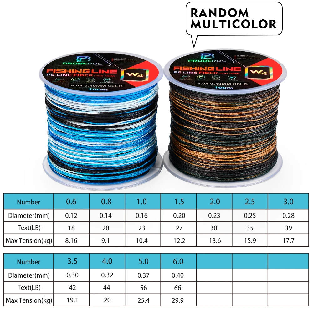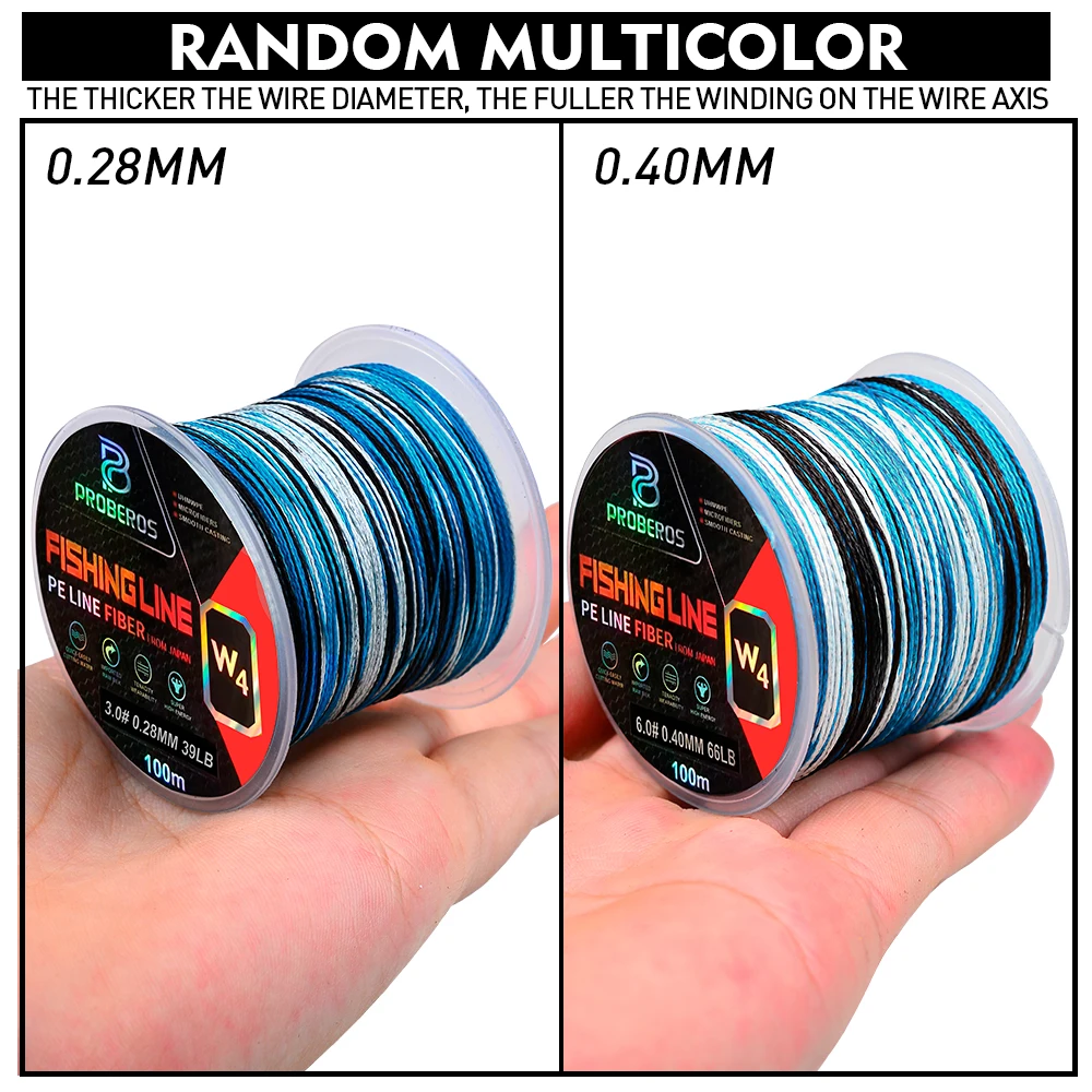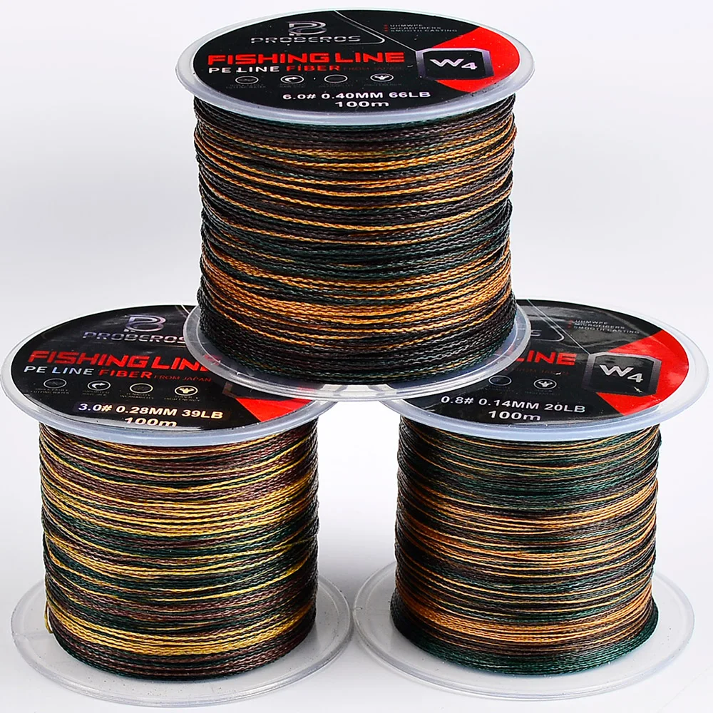 PROBEROS 100m Fishing Line Braided PE Line 4 Strands 18-66LB Multifilament Anti-bite Fishing Line Outdoor Fishing Accessories
