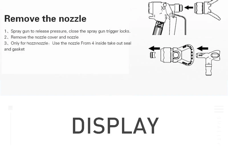 -100% new and high quality. -4 Series Sprayer nozzle, the model is complete, easy to wear, durable. -Easy operation, excellent atomization and anti switched from cleaning ability. -Depending on the size of the aperture, the range will be different. -Because of its excellent design, fast and easy to clean, simply rotate the nozzle to wash. -Nozzle size models and the size of the power of the machine, and spray the material also has a relationship, if the machine power is relatively large, it is recommended with a larger caliber nozzle. -Front digit represents the spray rate, the larger the number, the wider the spray pattern, followed by two representatives of the flow, the larger the number, the greater the flow, a larger caliber nozzle. -For small to medium-sized and large residential, commercial buildings spray works, sprayable interior and exterior latex paint, oil paint.