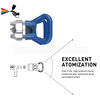 Product name: Airless spray tip Material: Tungsten steel Color: Blue and silver Size: Approx. 5.5×4.8cm/2.16″x1.88″ Pattern width: 250-300mm/9.84″-11.8″