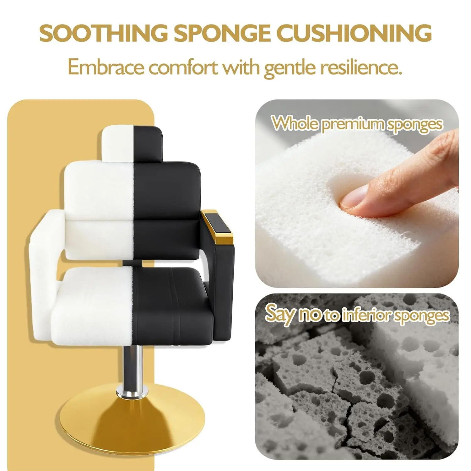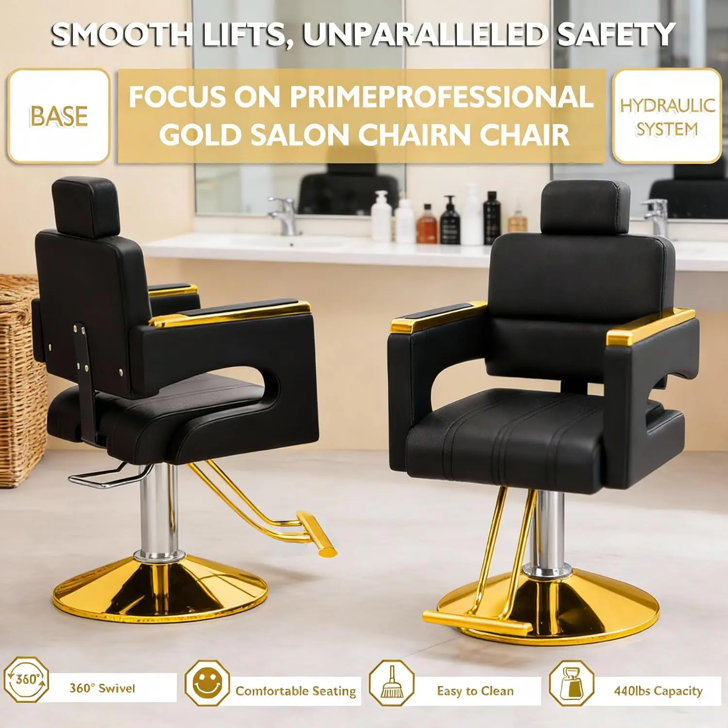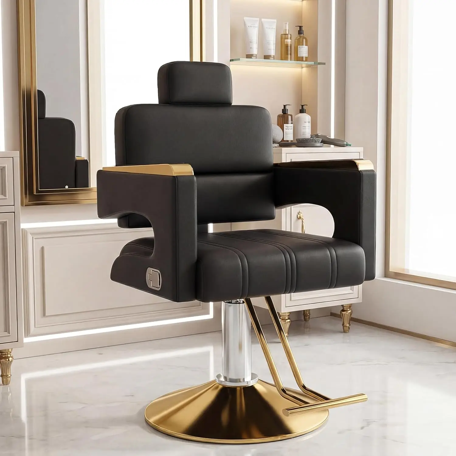 Timeless Golden Base Frame: Featuring a classic circular golden metal base, this chair combines vintage barbershop charm with modern stability. The heavy-duty frame offers 360° smooth rotation while anchoring securely to any salon floor.