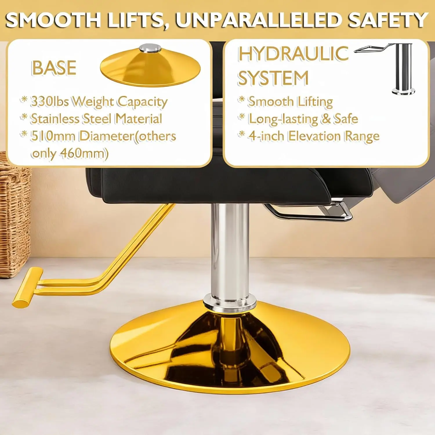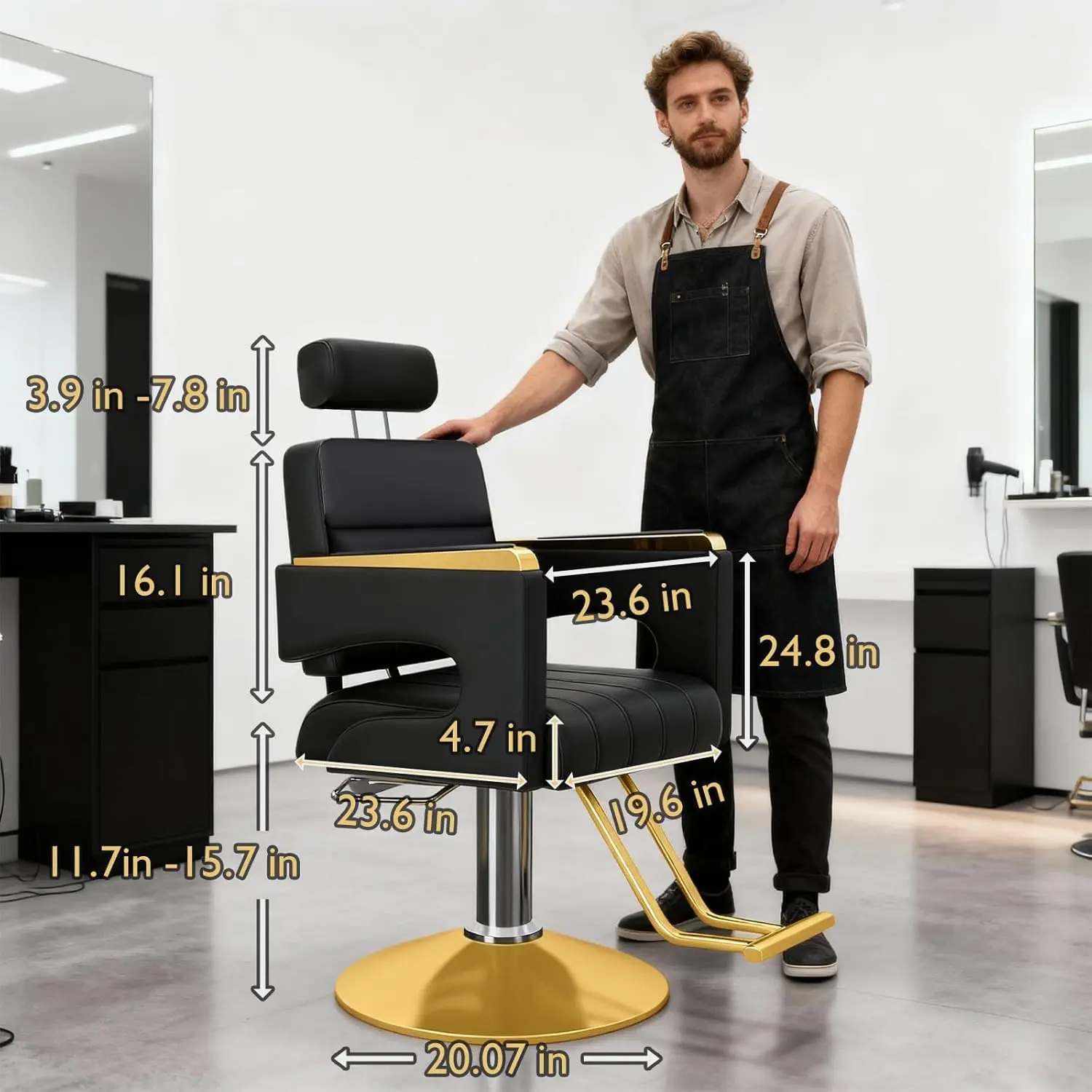 Professional-Grade Stability:Engineered for barbers who demand reliability, the chair’s weighted base and balanced structure prevent tipping or shifting during haircuts. Clients enjoy rock-solid support, while stylists from effortless maneuverability.