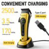 – 2500mAh high-capacity battery: 3.5 hours of fast charging delivers 170 minutes of continuous use, satisfying multi-person trimming needs