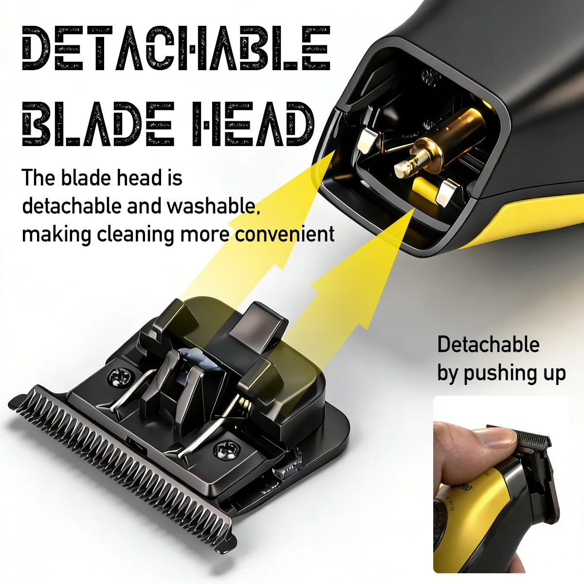 Cleaning: The blade head is detachable and washable