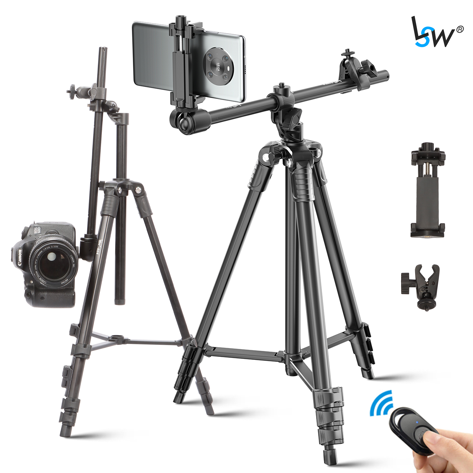 This product is equipped with a specially designed ball-head which can rotate 360 degree, allowing you to take photos at any angle with horizontally and vertically. And has a independent control knob to fix the angle.The center column lets you adjust the shooting angle—whether it’s vertical (0°, 22.5°, 45°, 67.5°, or 90°) or horizontal angle (360° panning). It can be stretched to be transverse mode, which means this tripod allows creative shooting.