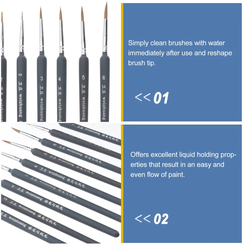 – Simply clean with warm water immediately after use and reshape brush tip.