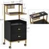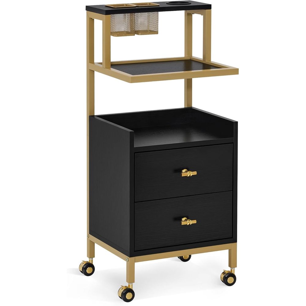 [Diversified Storage]: It is equipped with an upgraded metal tool holder and two metal tool baskets, one open storage shelf and two large capacity drawers, the rolling salon cart fulfills the need for multiple storage options for your various tools.