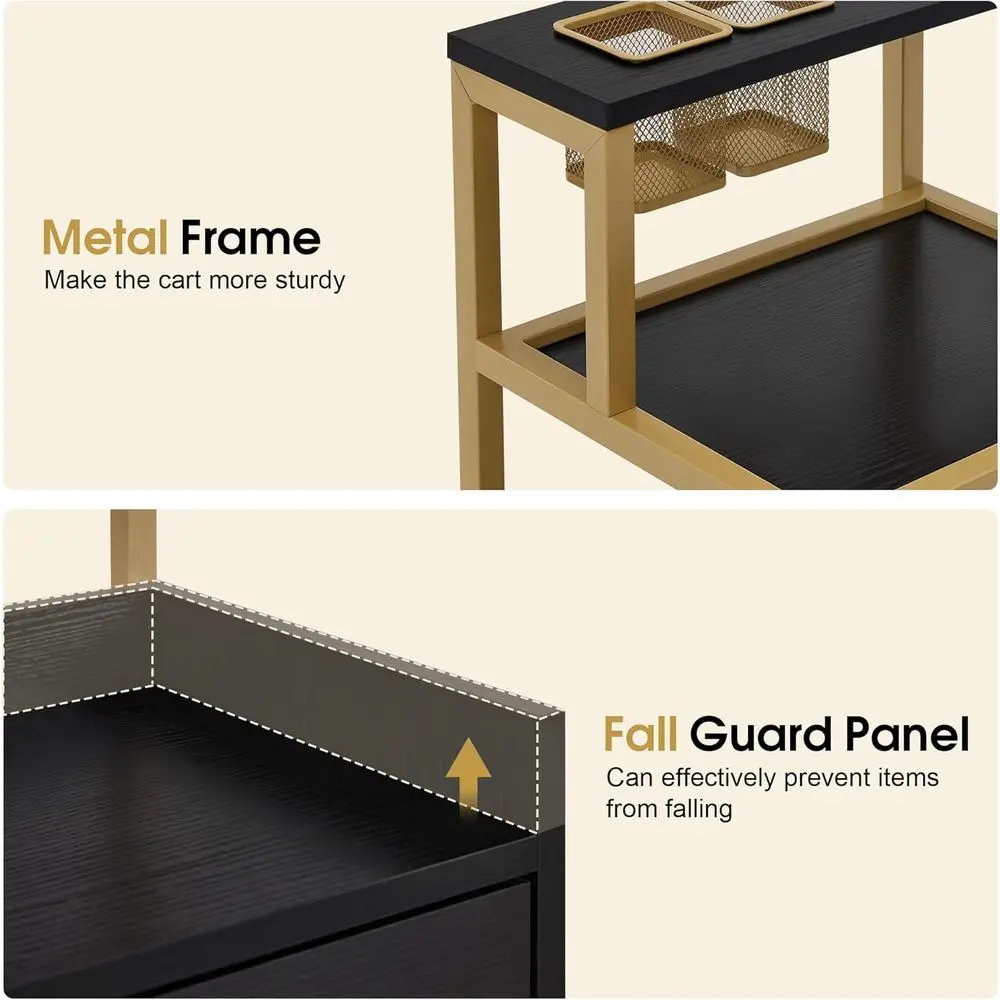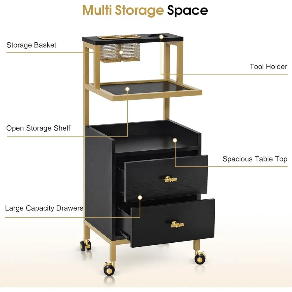 [Diversified Storage]: It is equipped with an upgraded metal tool holder and two metal tool baskets, one open storage shelf and two large capacity drawers, the rolling salon cart fulfills the need for multiple storage options for your various tools.