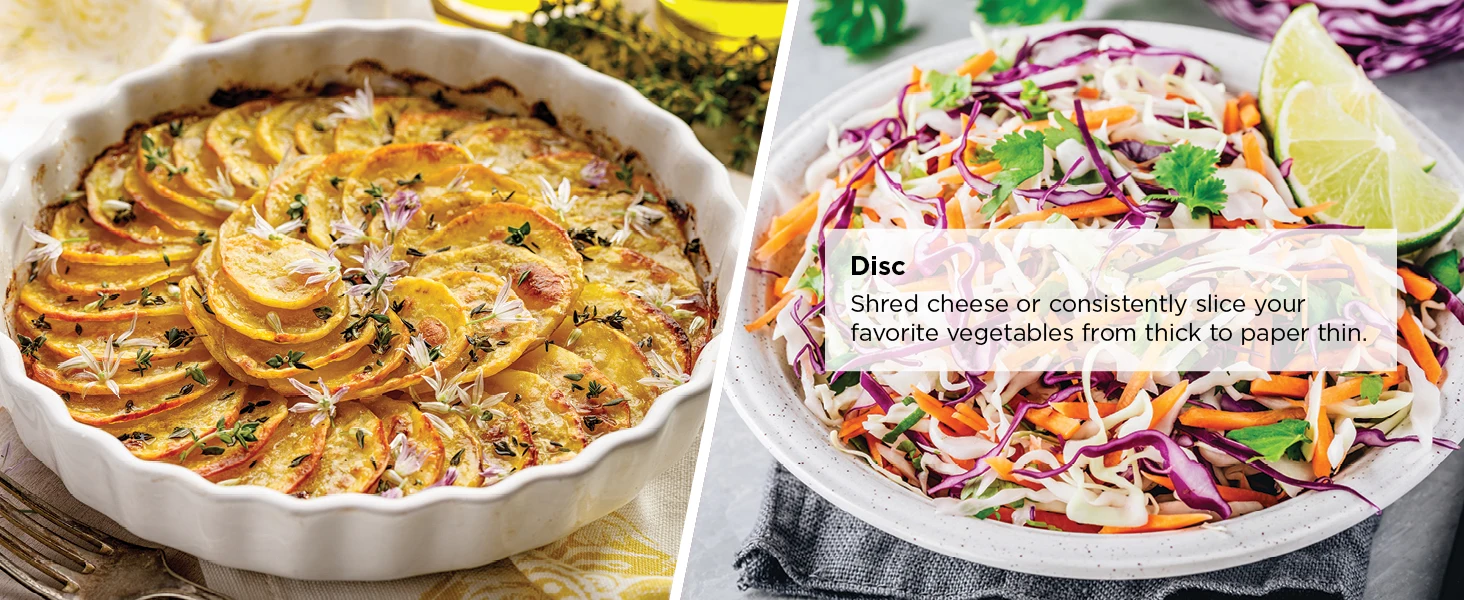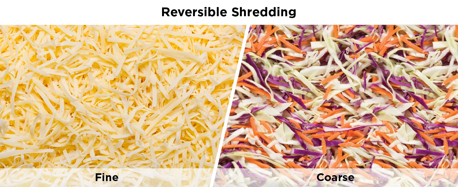 Go from thick to paper thin with adjustable slice settings as well as get fine and coarse shredding from our 2-in-1 disc.
