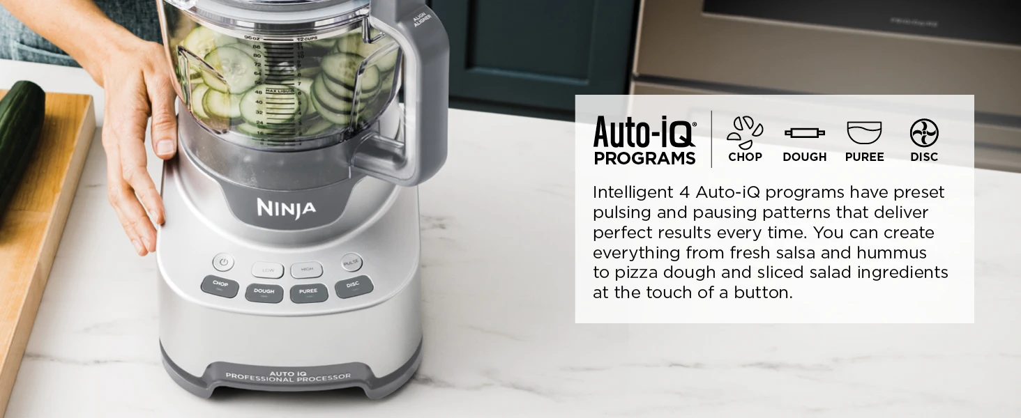 Meet Ninja’s most powerful food processor, the Ninja Professional XL Food Processor. It has never been easier to chop, slice, shred, or mix ingredients. 1200-peak-watt power and Auto-iQ preset programs power through any tough ingredients with none of the guesswork. All the versatility, more capacity than ever before, and easy cleanup all in one.