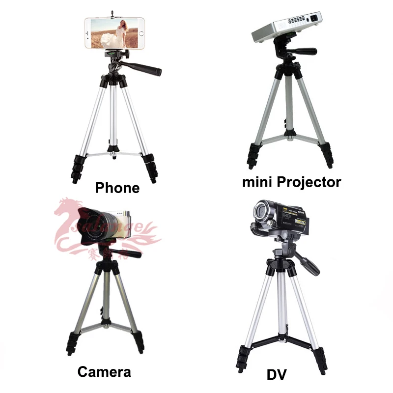can support device which less than 2kg , like all kinds of smartphones ( need to buy the clip ), action cameras and entry-level SLRs. The bottom of the tripod is made of non-slip rubber feet. With this tripod, you can take very beautiful photos or vlogging even on the rough road.
