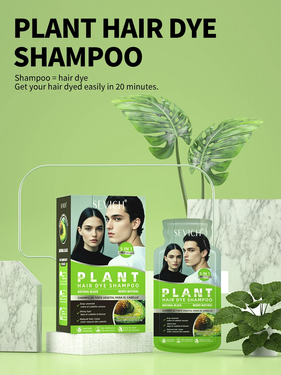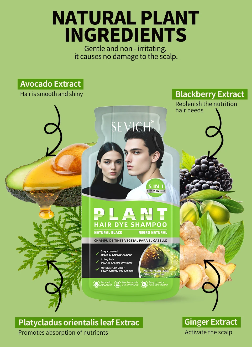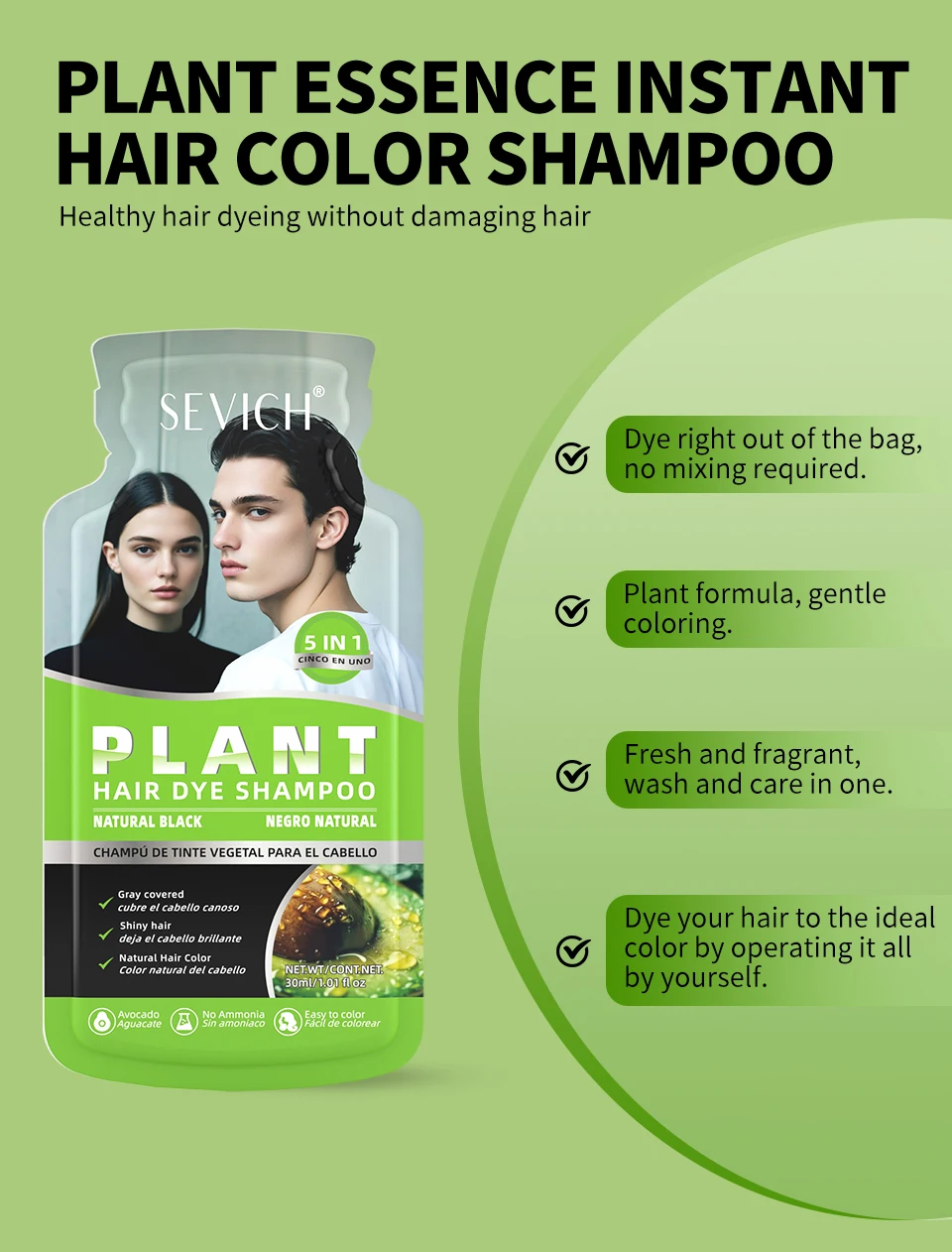 Pure Natural Herbal Black Hair Dye Shampoo for Women&Men 5 In 1 Bubble Plant Hair Color Shampoofor Gray Hair Non-irritating