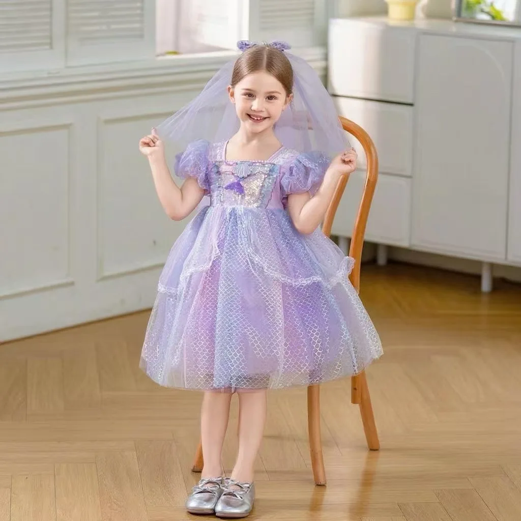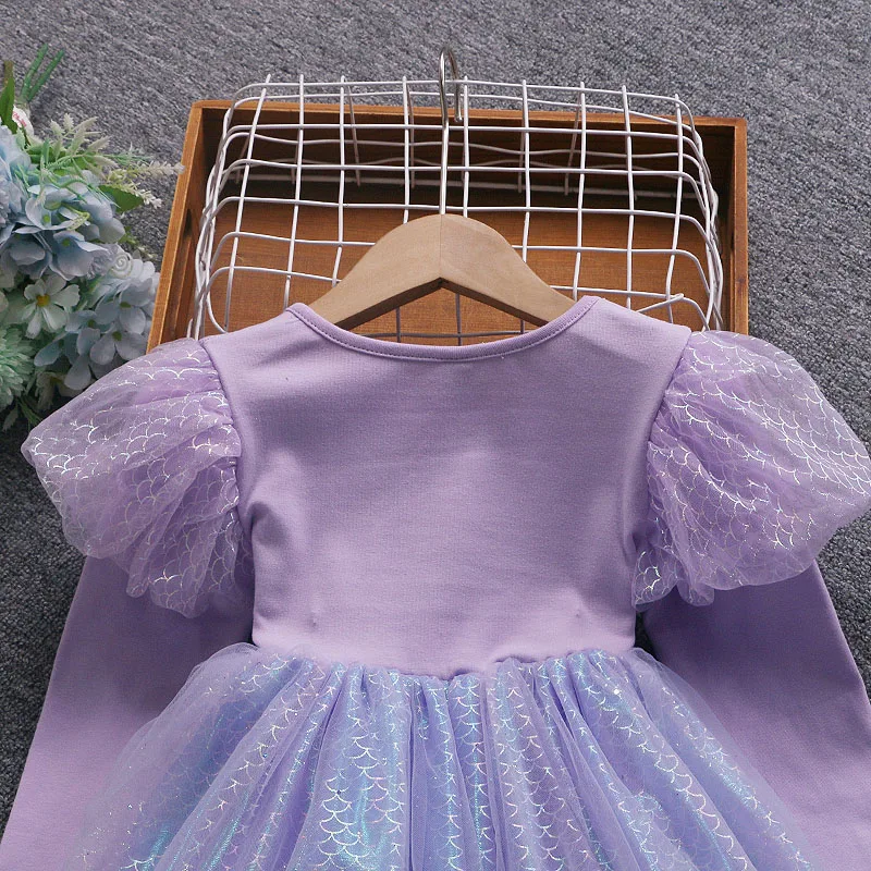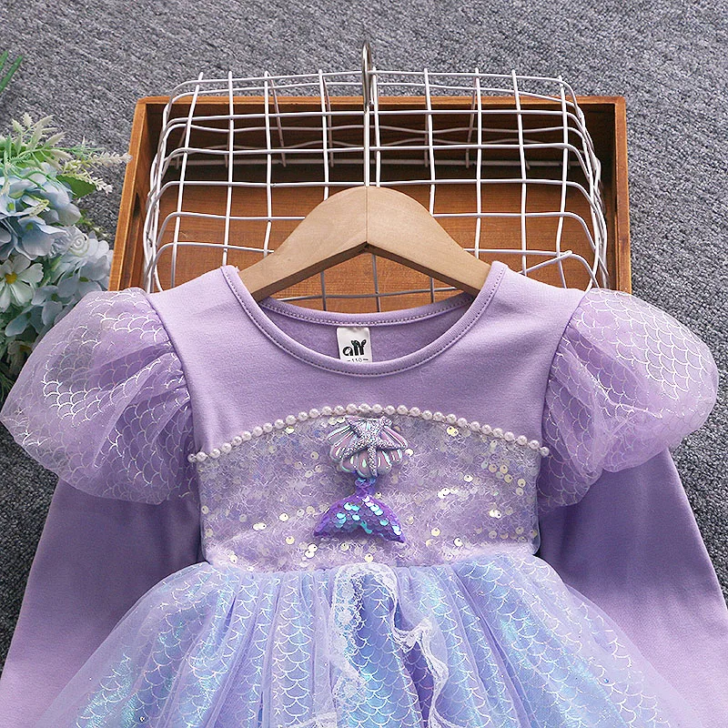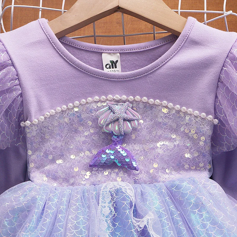 Sparkling Princess Details – Shimmering sequin decorations on the chest combined with the mermaid shell accessory create an authentic underwater princess look for imaginative play.