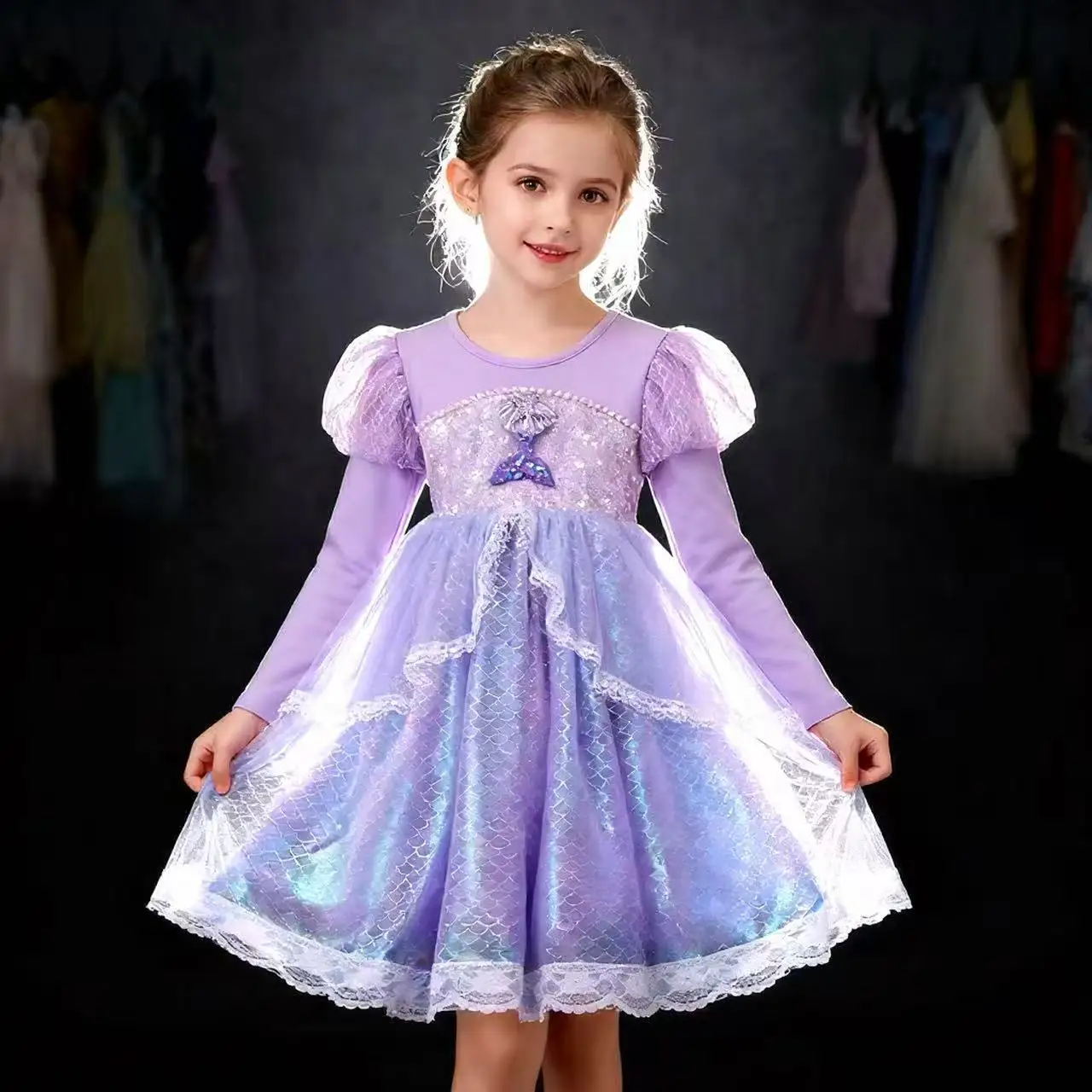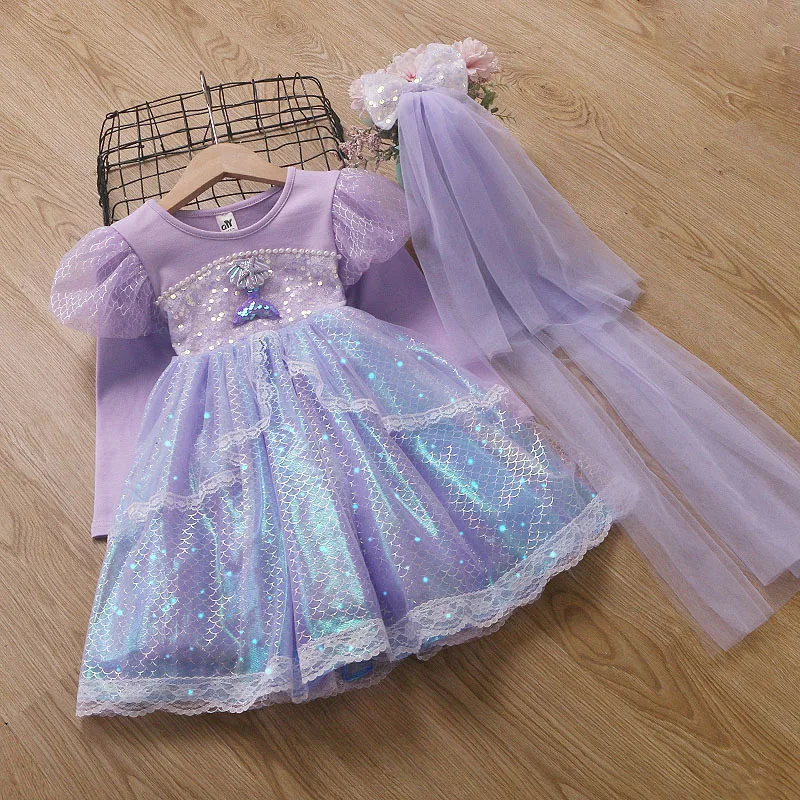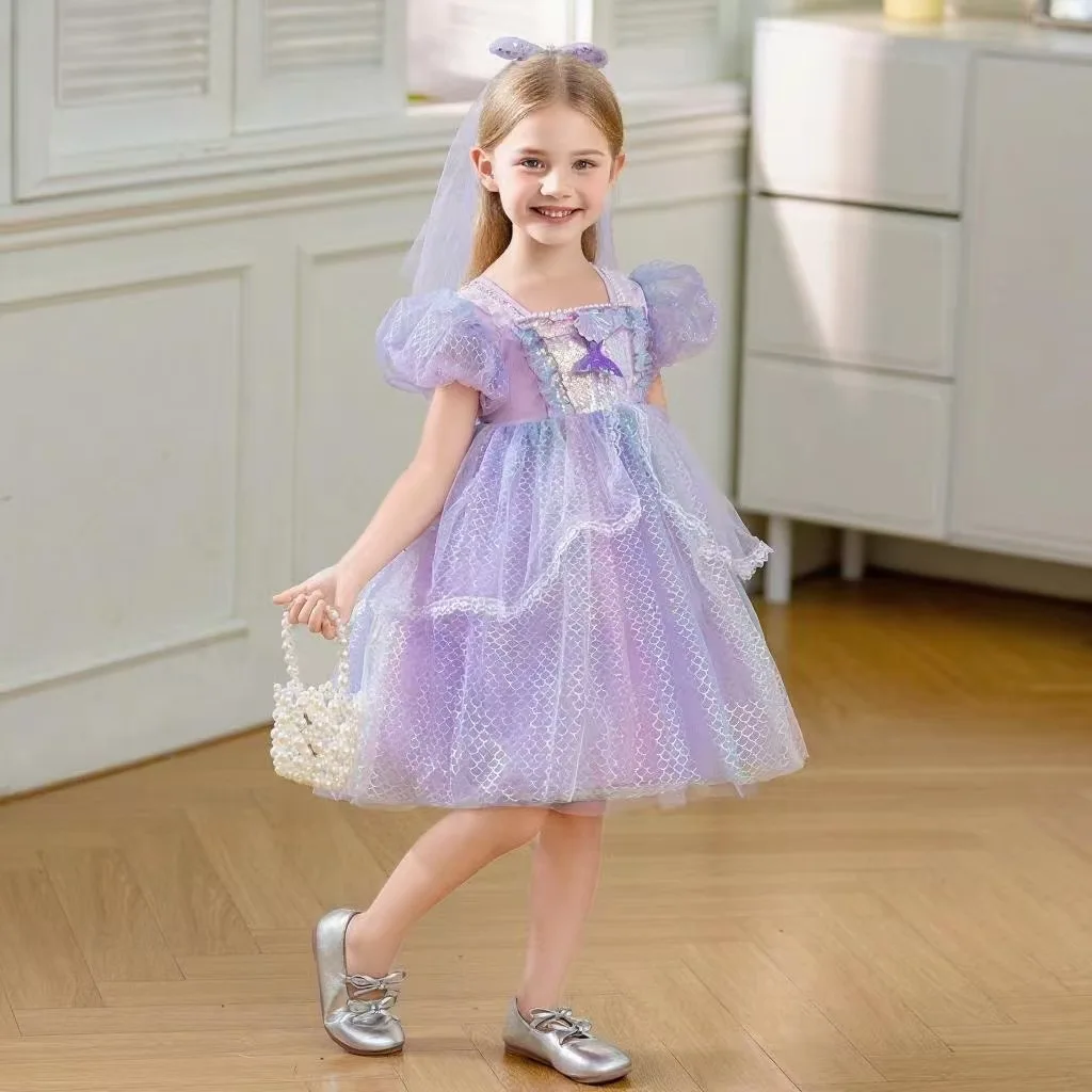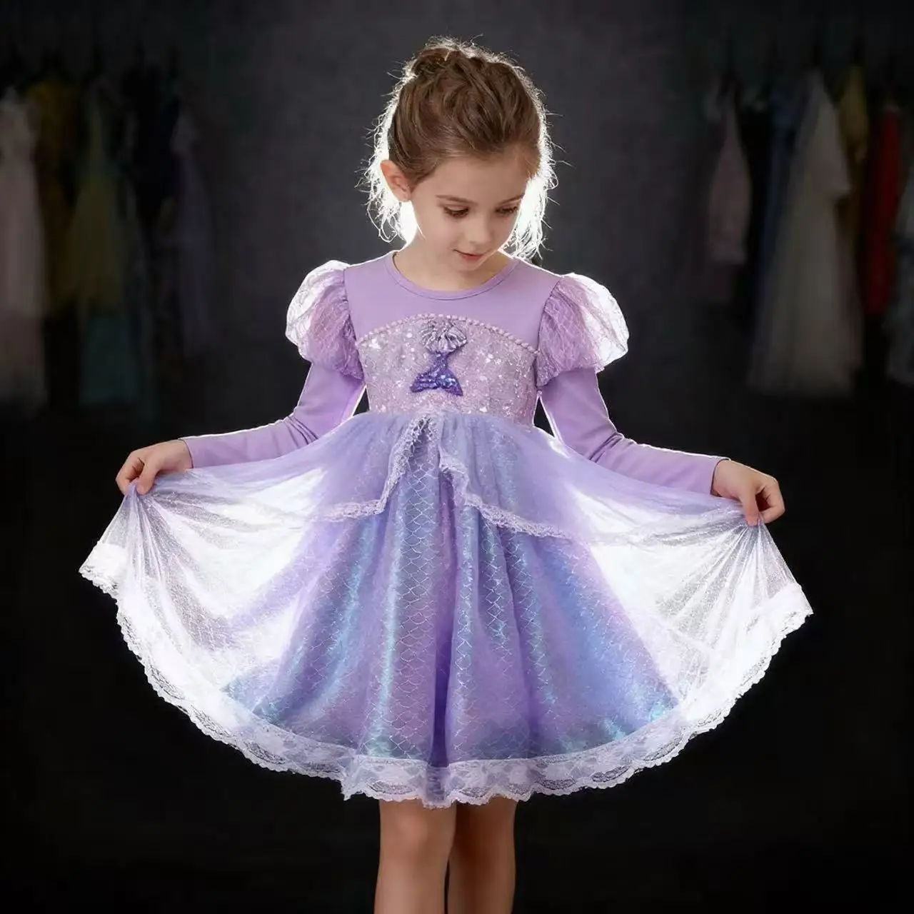 Sparkling Princess Details – Shimmering sequin decorations on the chest combined with the mermaid shell accessory create an authentic underwater princess look for imaginative play.