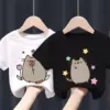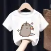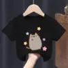 Pusheen Cat T-shirt for Children Cotton Cute Cartoon Black White T-shirt Anime Print Short Sleeve Boy Girl Loose Clothing Gift