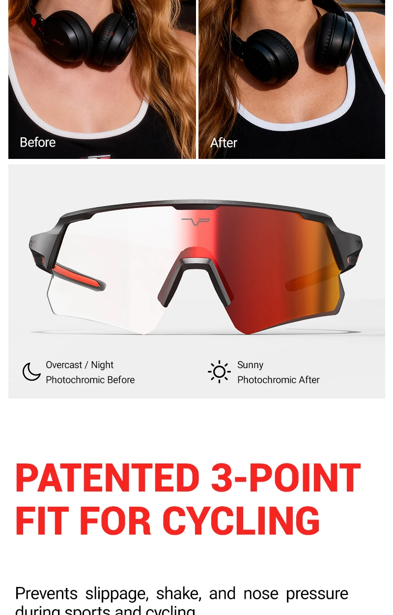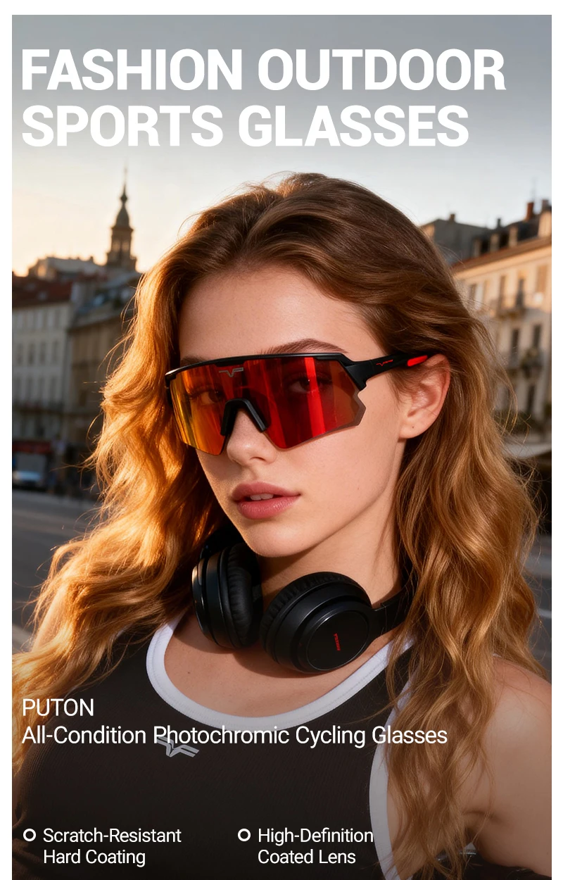 PUTON Photochromic Cycling Glasses Cycling Eyewear Drive Hiking Outdoor Sunglasses Cycling Glasses MTB Road Bicycle Goggles