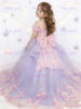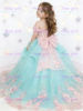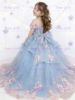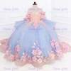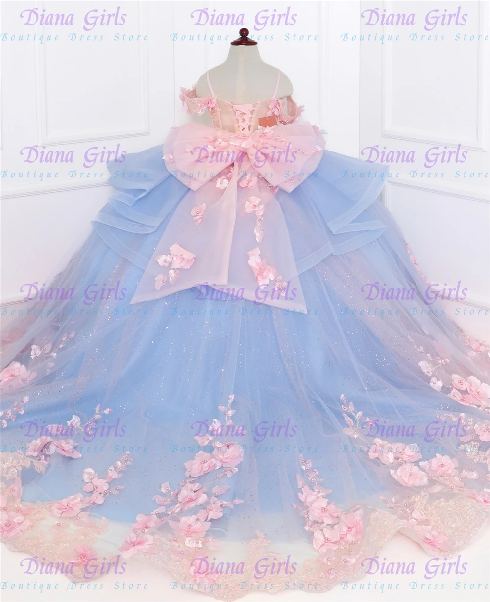Quality Gorgeous Blue TUlle Fluffy Exquisite Pink Applique Flower Girl Dress for Wedding Birthday Party First Communion Gowns