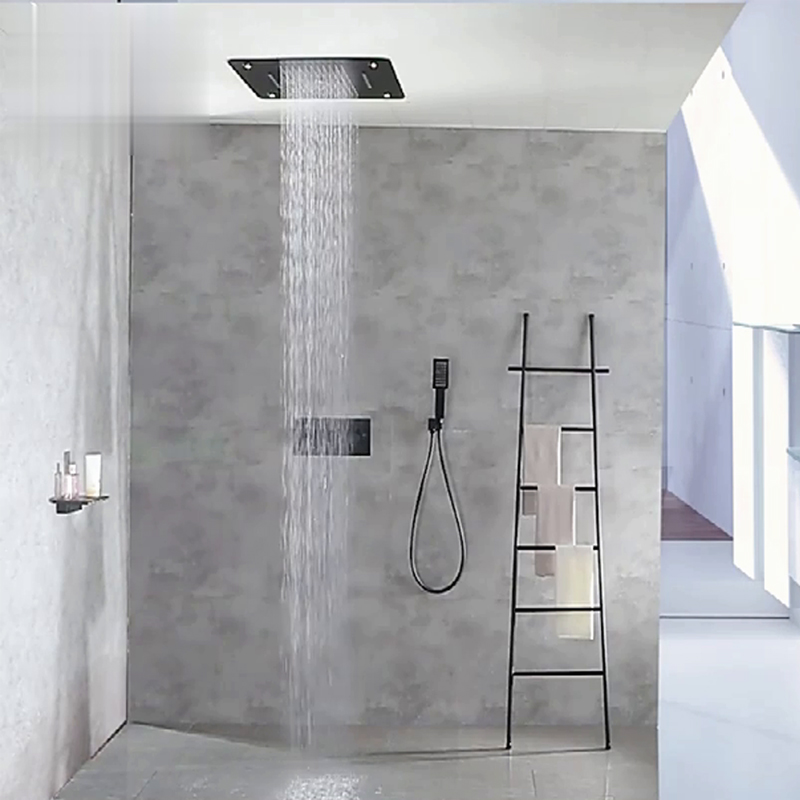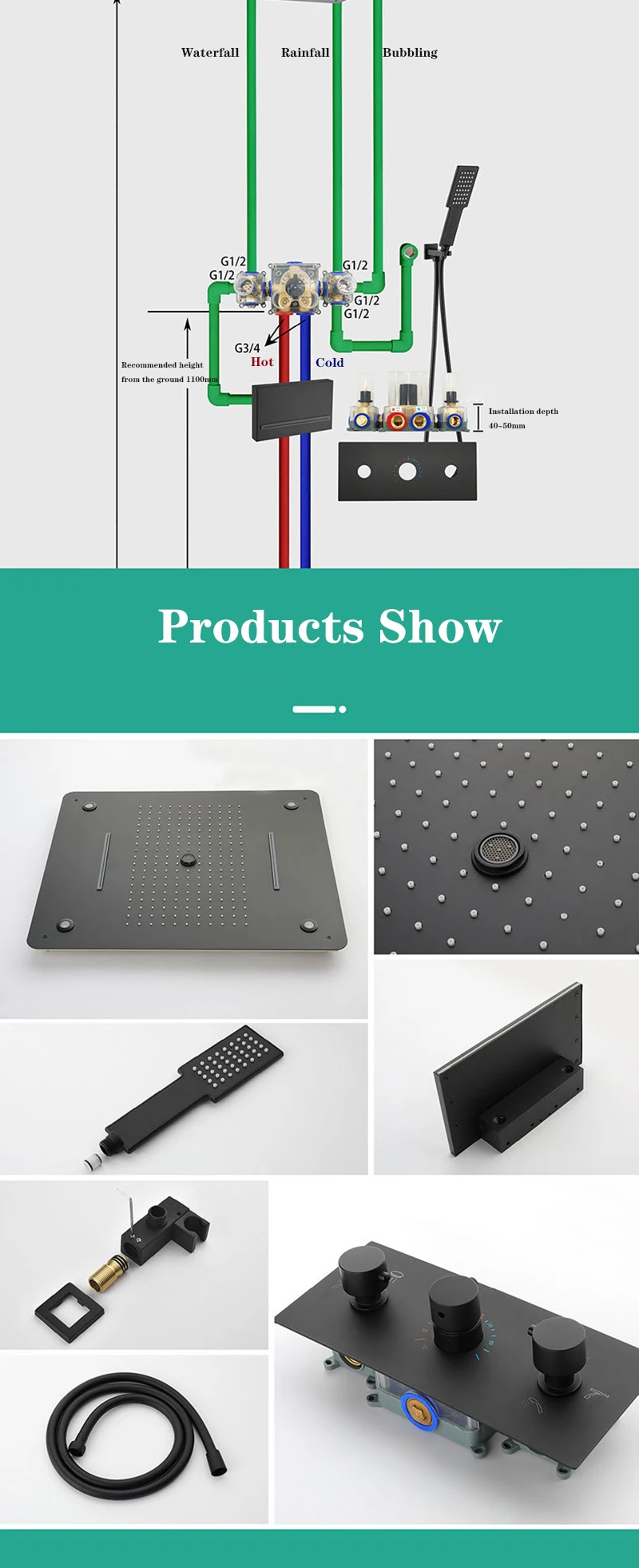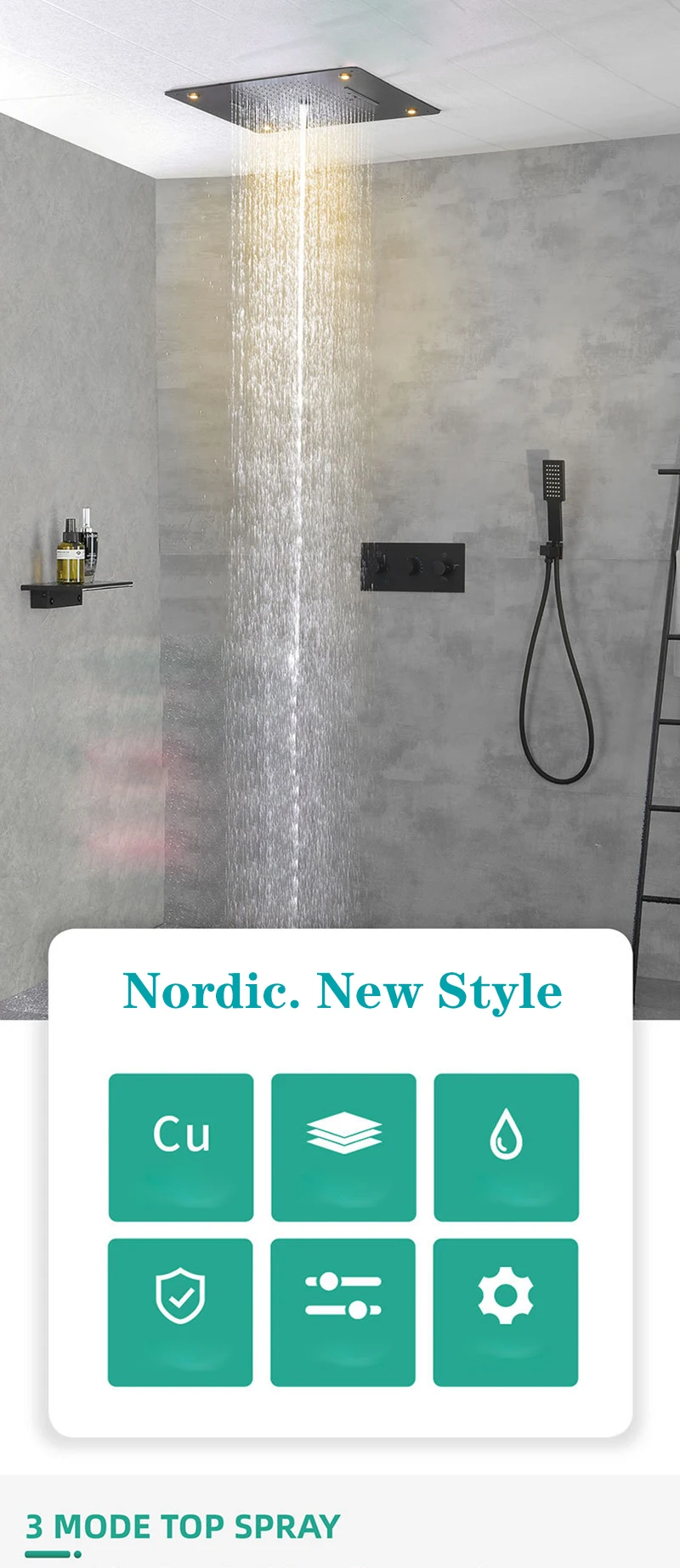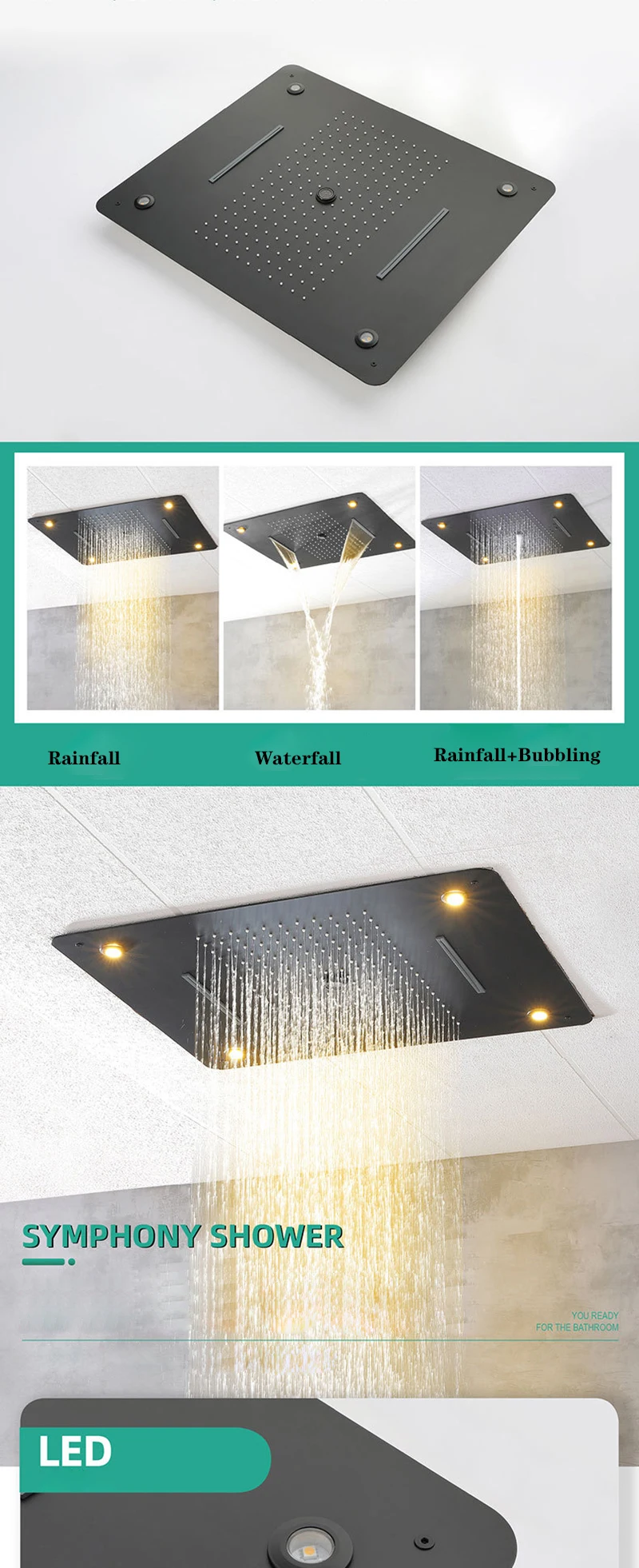 Rain 500*580mm Shower Panel System Waterfall LED Shower Head Warm Color Brass Thermostatic Bathroom Faucets Matte Black Ceiling