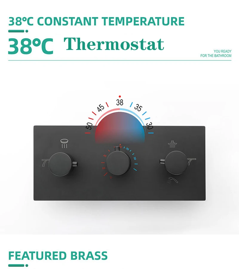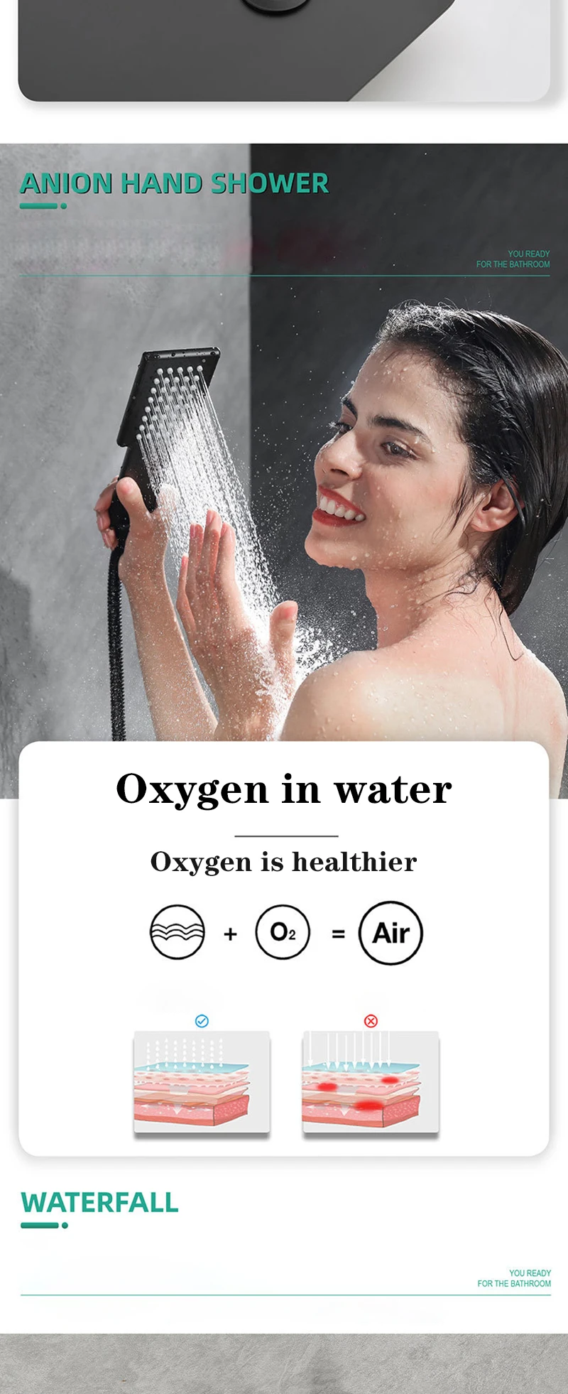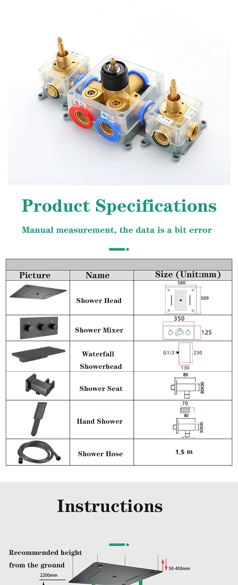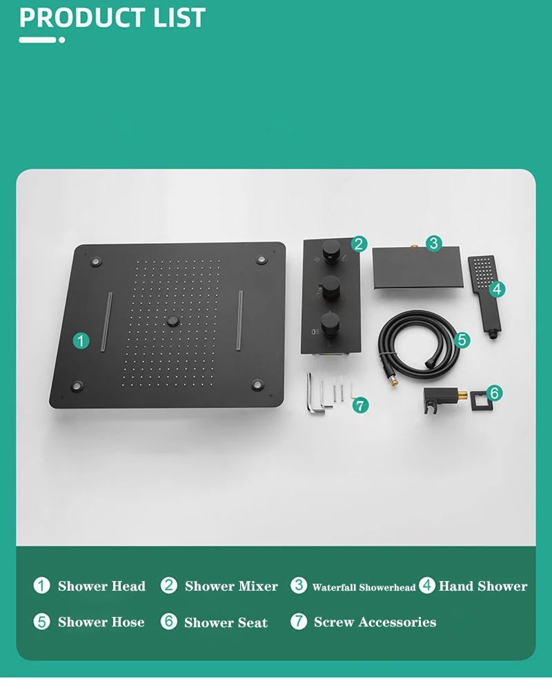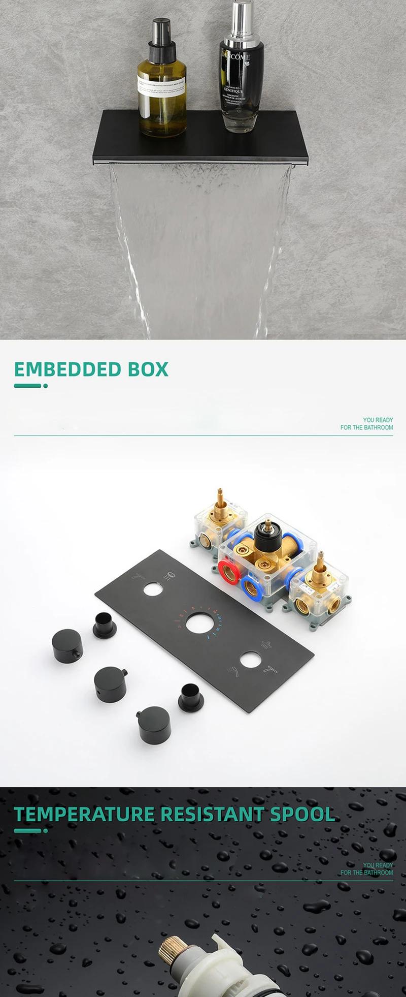 Rain 500*580mm Shower Panel System Waterfall LED Shower Head Warm Color Brass Thermostatic Bathroom Faucets Matte Black Ceiling