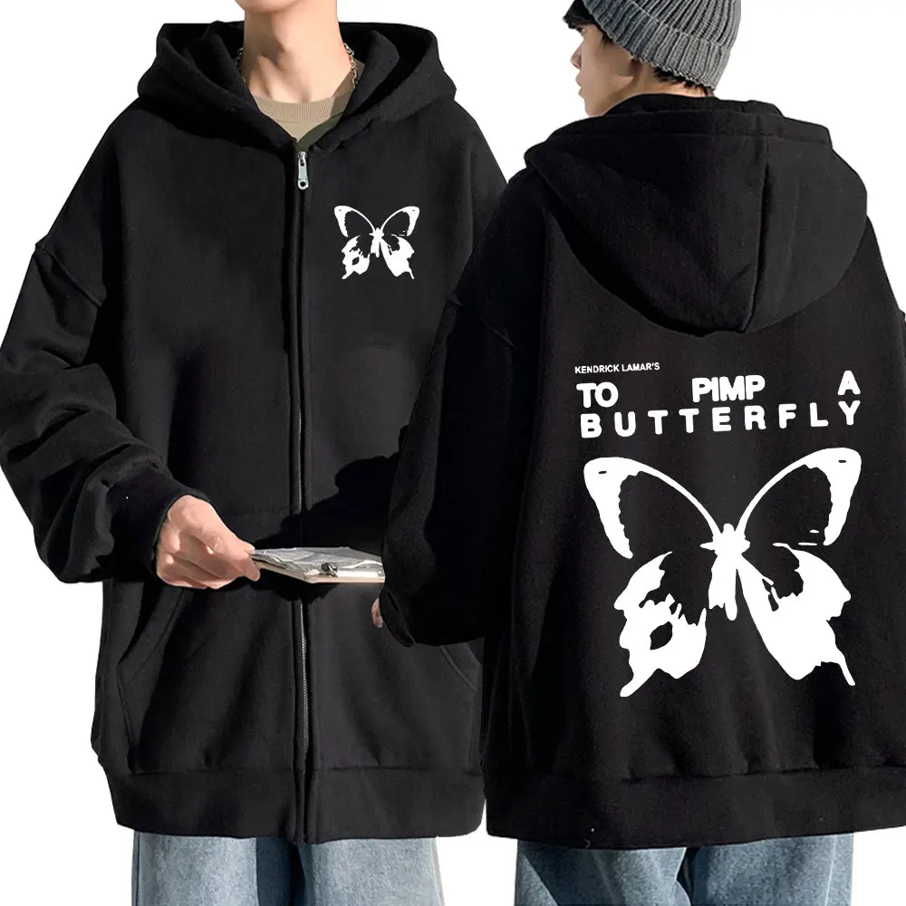 Rapper Kendrick Lamar To Pimp A Butterfly Zipper Hoodie Men Fashion Hip Hop Oversized Pullover Vintage Gothic Zip Up Sweatshirts