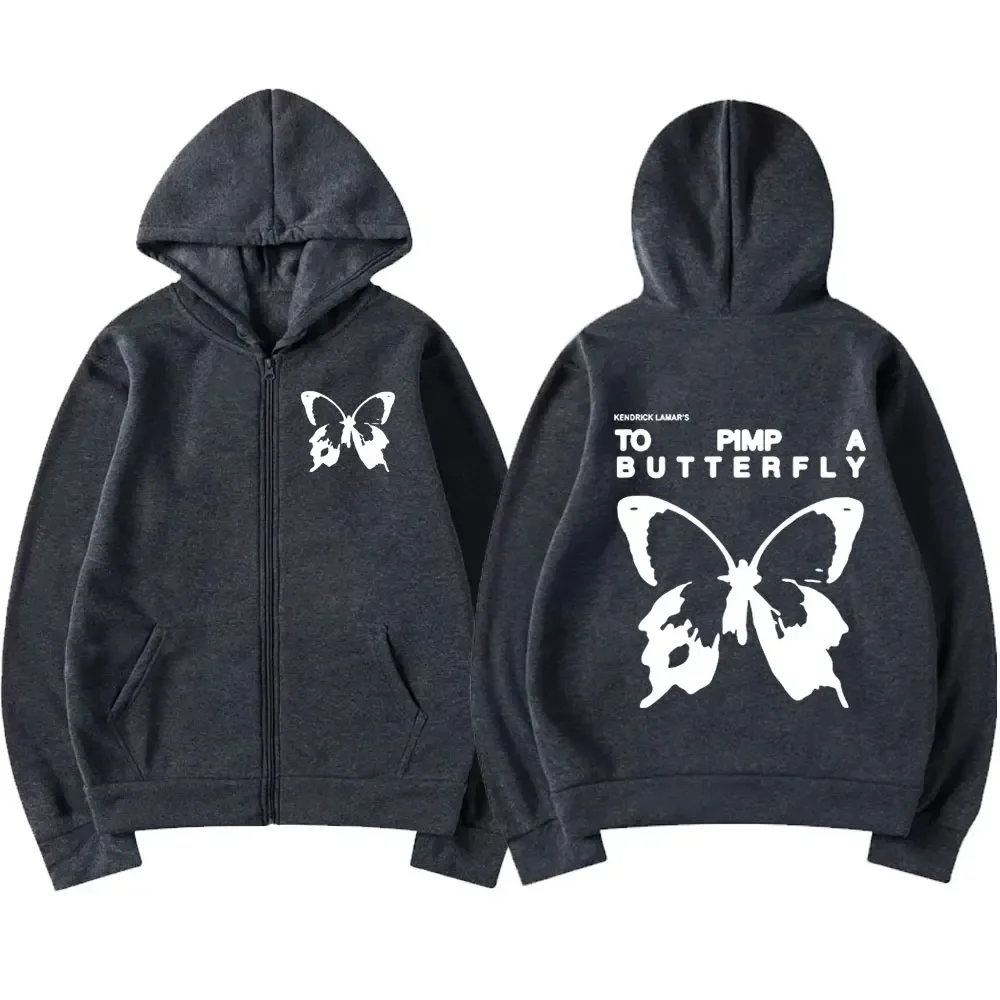 Rapper Kendrick Lamar To Pimp A Butterfly Zipper Hoodie Men Fashion Hip Hop Oversized Pullover Vintage Gothic Zip Up Sweatshirts