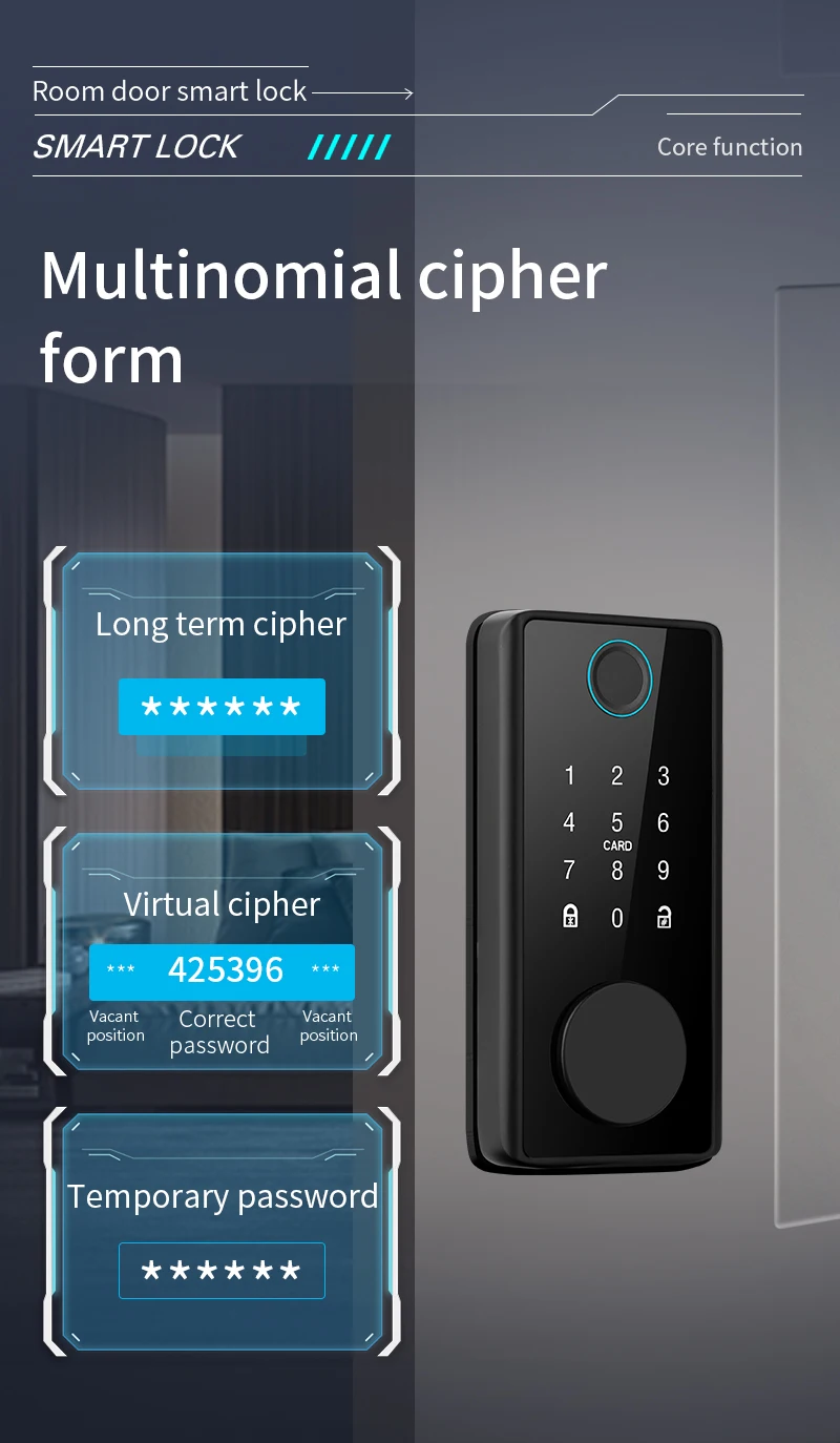 Under any lighting conditions, the operation steps are clearly displayed and easy to operate. The virtual password function is designed to prevent peeping and avoid password leakage