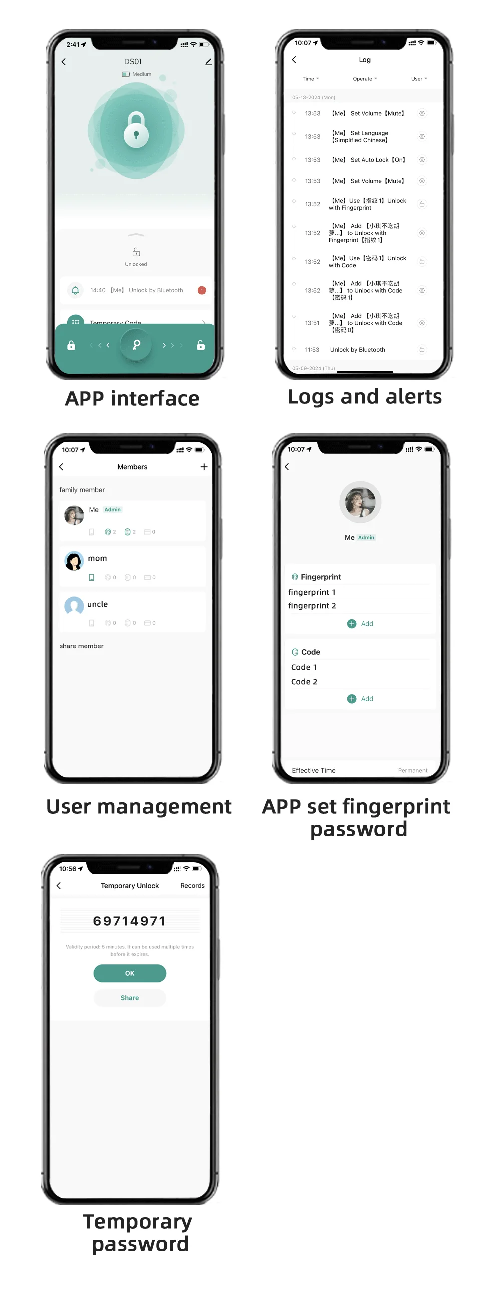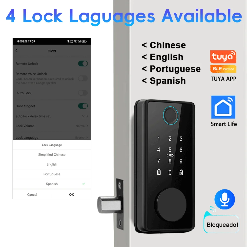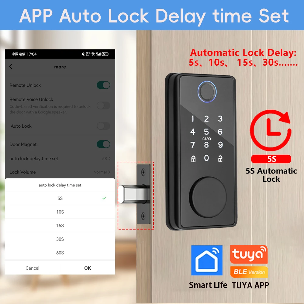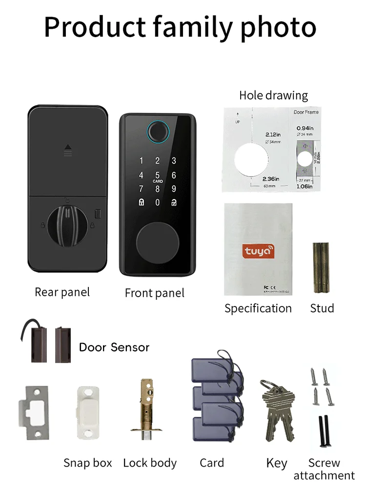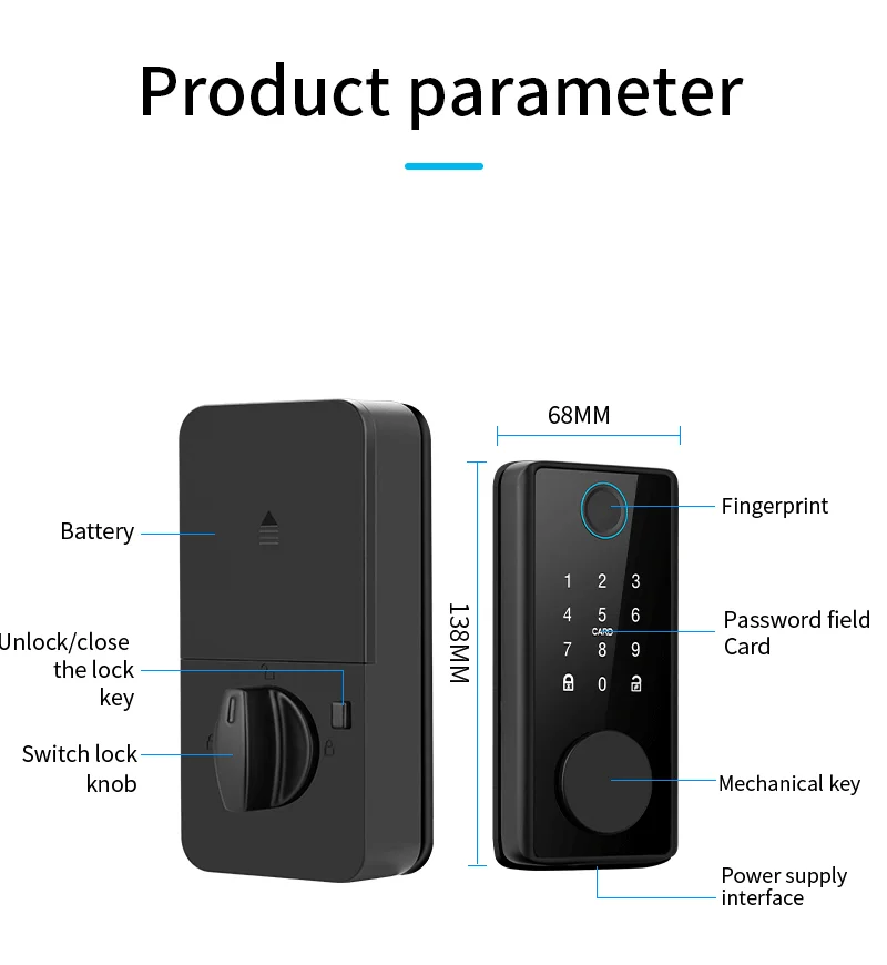 Unlock Method: Fingerprint, password, Tuya APP, temporary password, mechanical key