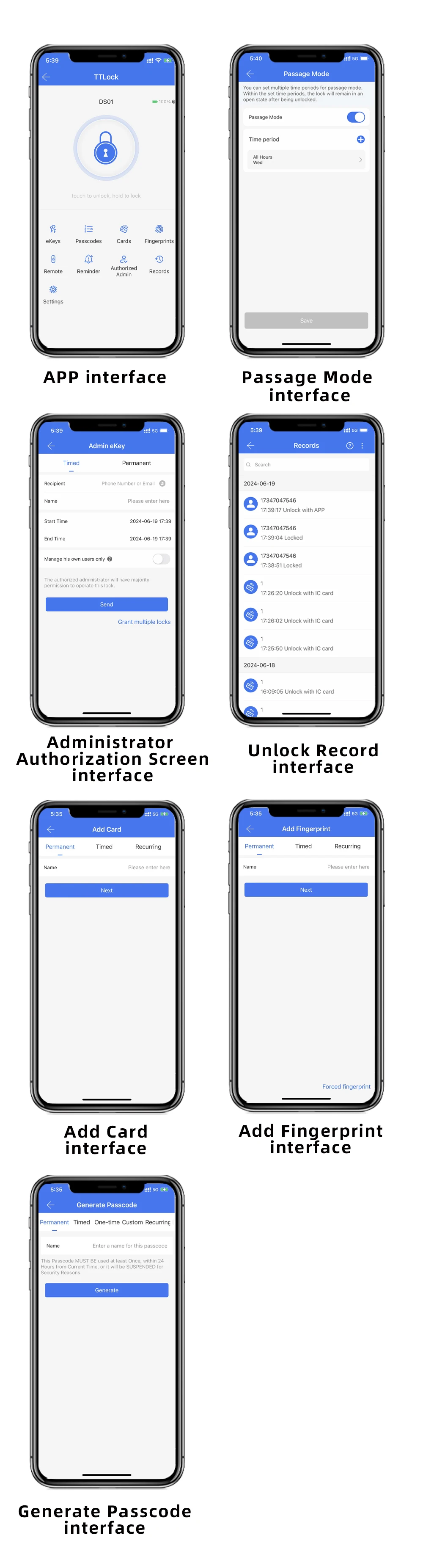 Unlock methods: TT Lock/ Fingerprint / Password / IC Card/Key Unlock