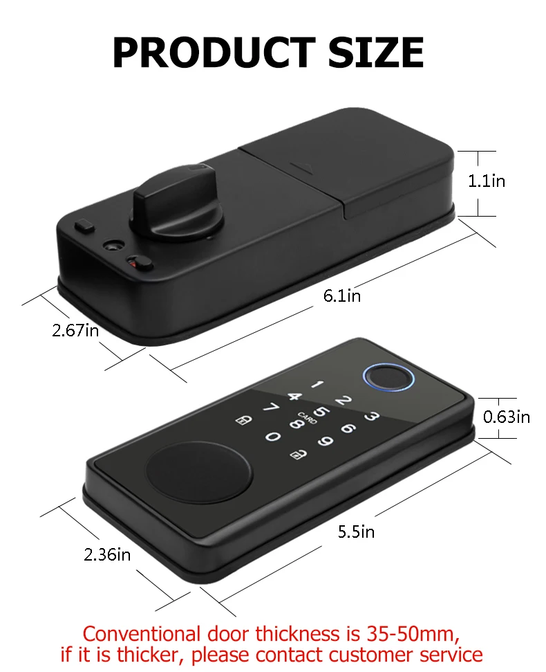 Unlock Method: Fingerprint, password, TT lock APP, temporary password, mechanical key