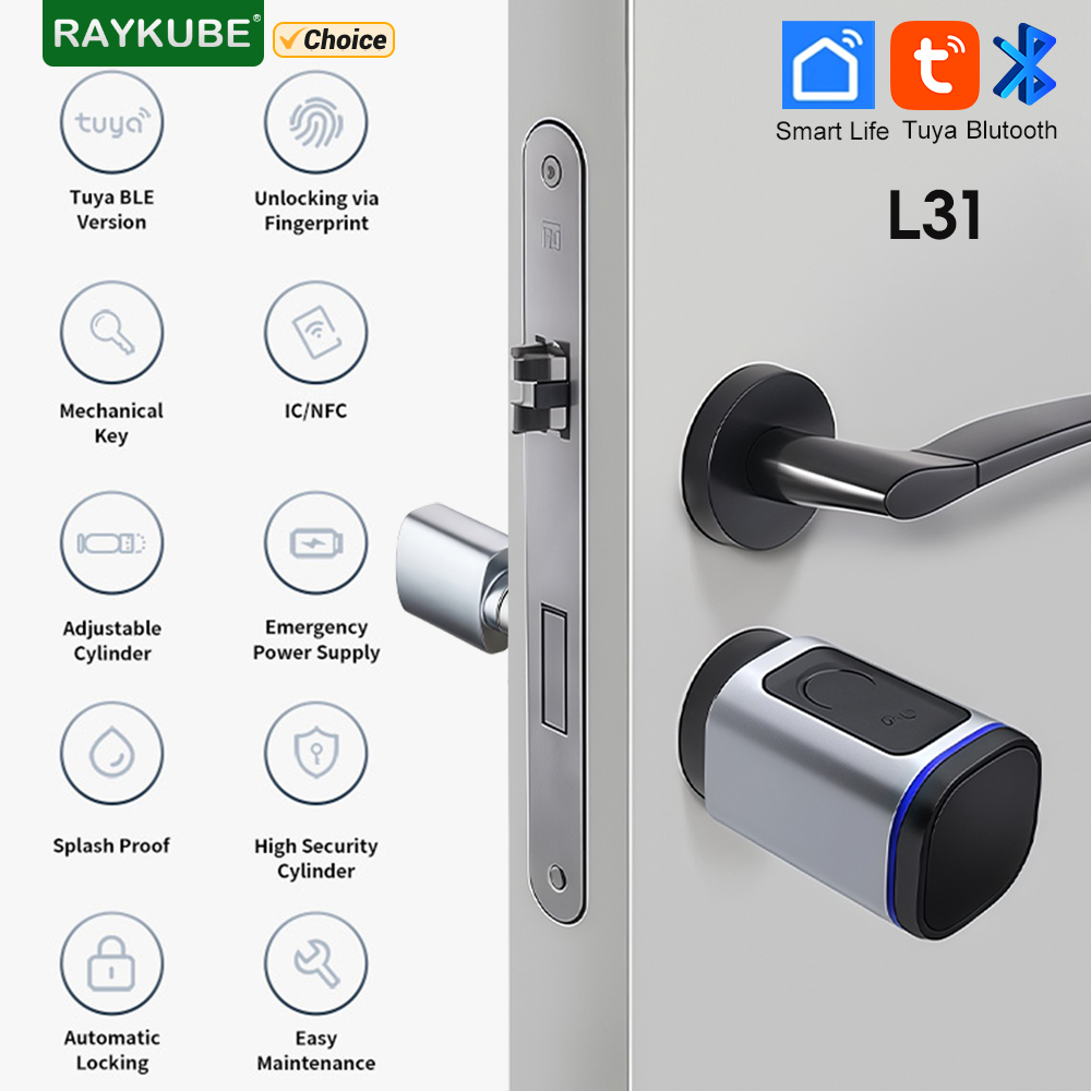 RAYKUBE L31 Tuya BLE Smart Fingerprint Electronic Door Lock Cylinder Lock With Tuya/ Smart Life APP Keys IC Card/NFC Unlock