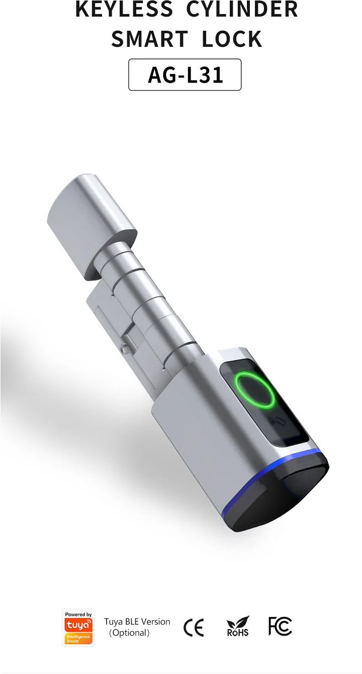 RAYKUBE L31 Tuya BLE Smart Fingerprint Electronic Door Lock Cylinder Lock With Tuya/ Smart Life APP Keys IC Card/NFC Unlock