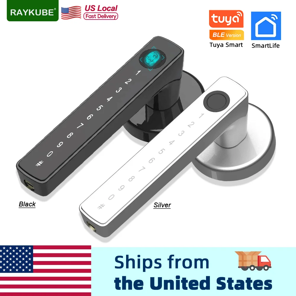 RAYKUBE M5 Tuya BLE Smart Fingerprint Door Lock Electronic Lock with Password/Key/Card/Smartlife/Tuya APP Unlock For Bedroom From USA. Local