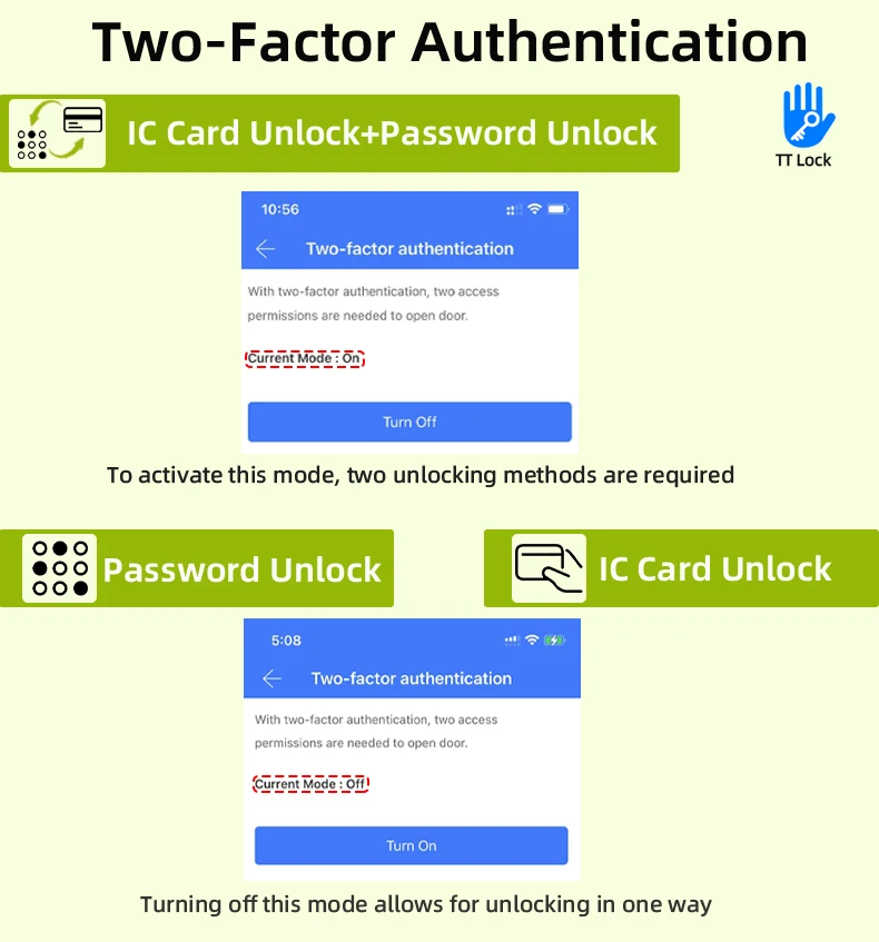Two-Factor Authentication is off: IC Card Unlock or Password Unlock