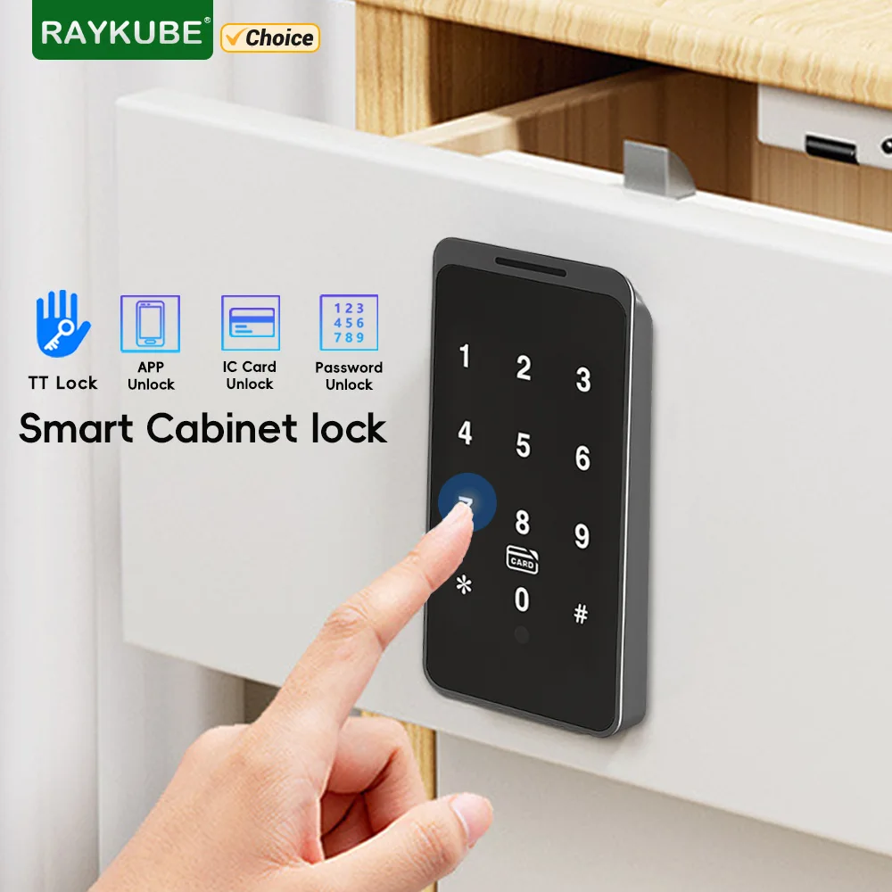 RAYKUBE TT Lock Bluetooth Keyless Intelligent Wooden Cabinet Lock Digital Electric Drawer Lock With Password/IC Card/APP Unlock