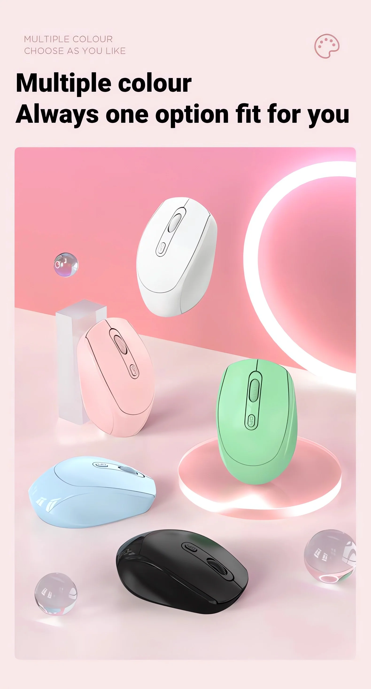 1. Color: black, white, pink, green, blue