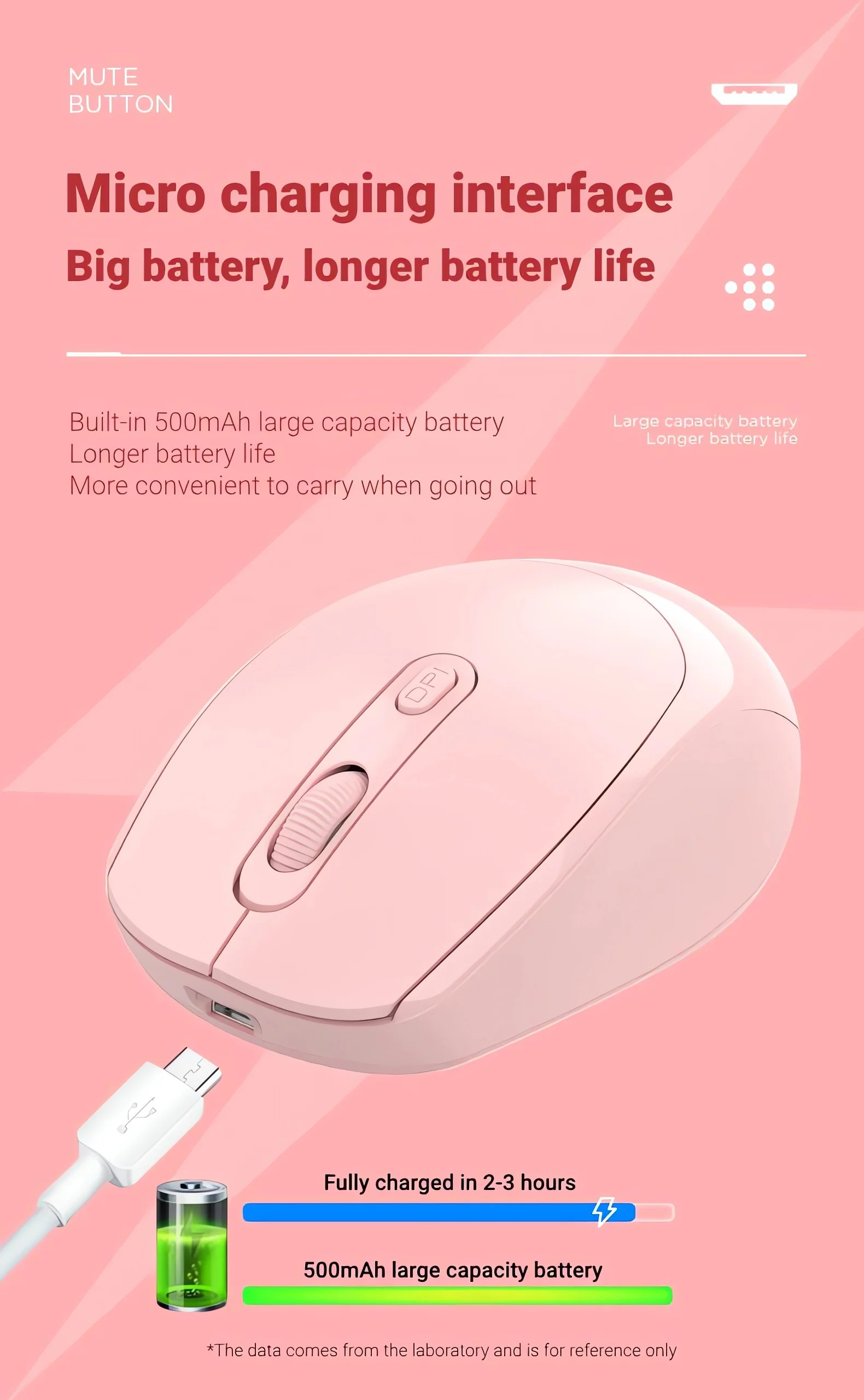 ❤Built-in 500mAh large-capacity battery, 2 hours of charging, long use time.