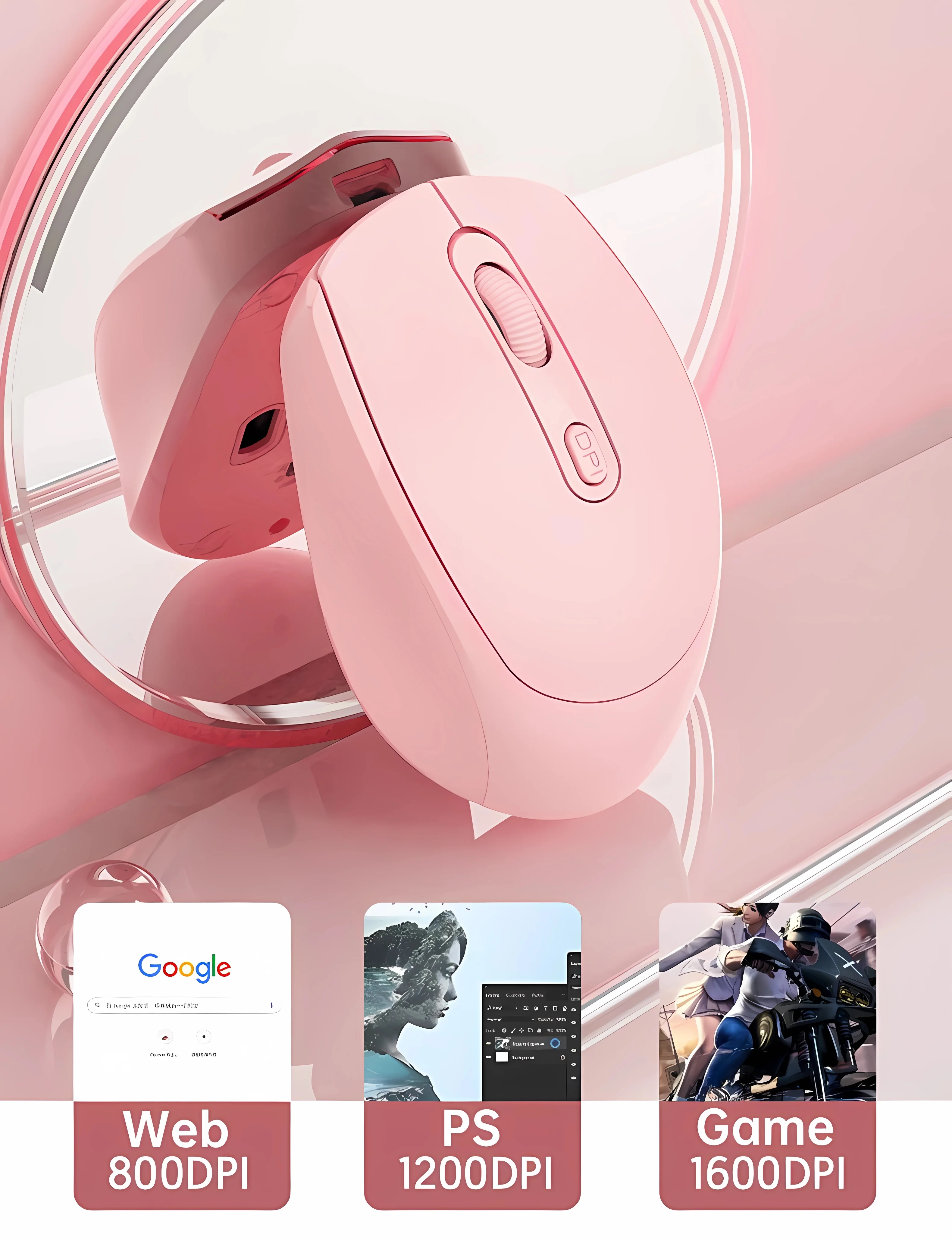 ❤ 3-level DPI adjustment, up to 1600DPI, to meet the needs of different situations.