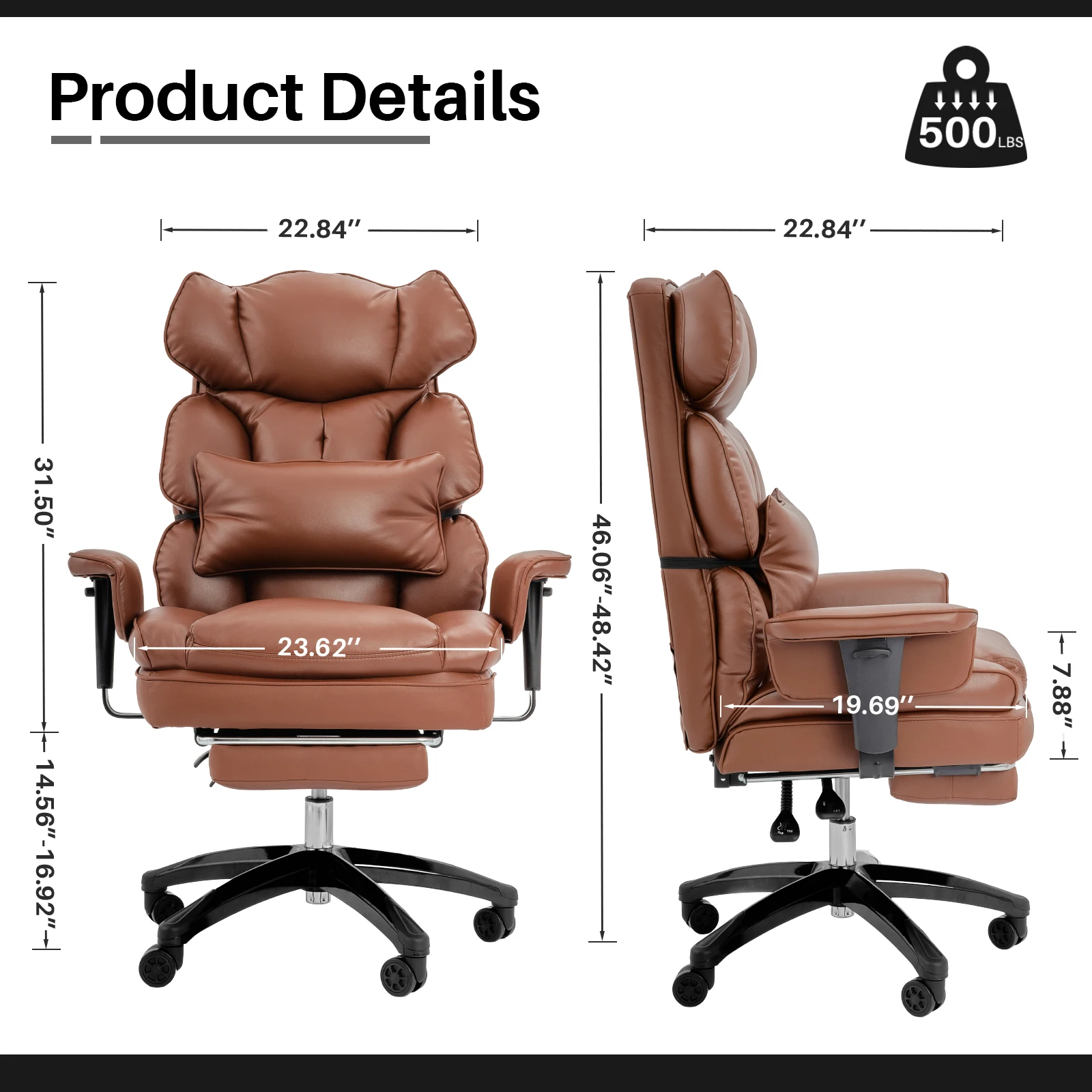 CRAFTED FOR LARGE BODIES, PERSONALITY NEEDS FULLY MEETED: The Big & Tall office chair is crafted to accommodate larger and taller body types, with a rigorously tested weight capacity of up to 500 lbs. The wider seat and backrest design brings the ultimate support experience for each user, ensuring that you sit comfortably and feel at ease.
