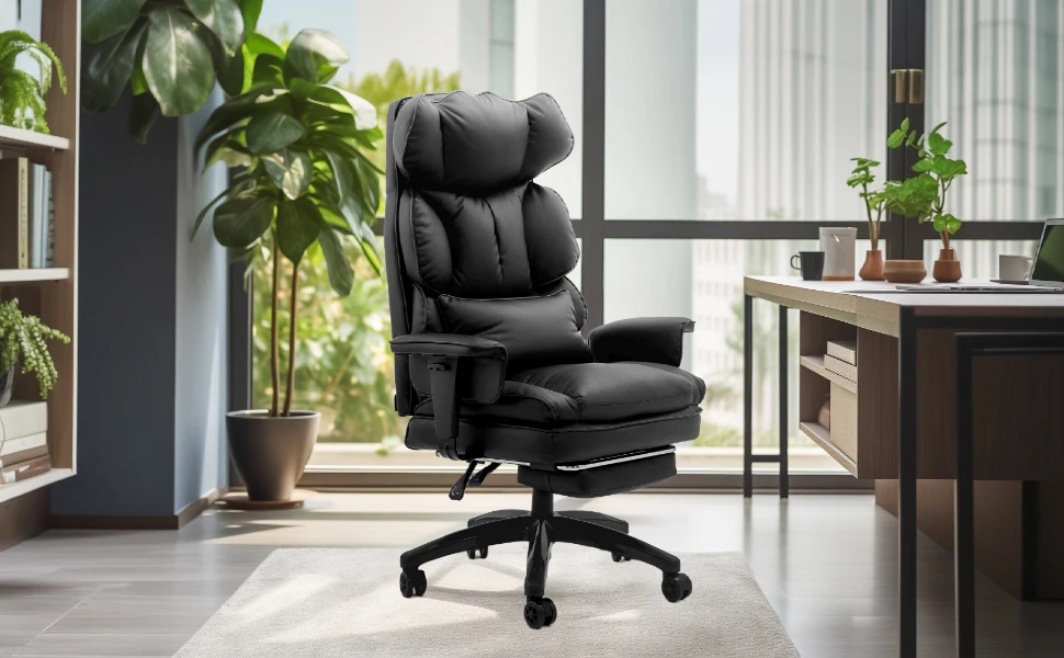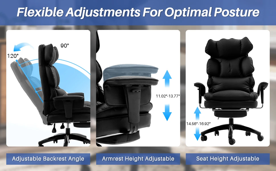 Multi-functional flexible adjustment, the best posture control: chair with adjustable height, adjustable backrest and adjustable armrest function, so you can easily find the most comfortable support angle, regardless of body size. The footrest design further enhances the overall comfort and makes office time more enjoyable.