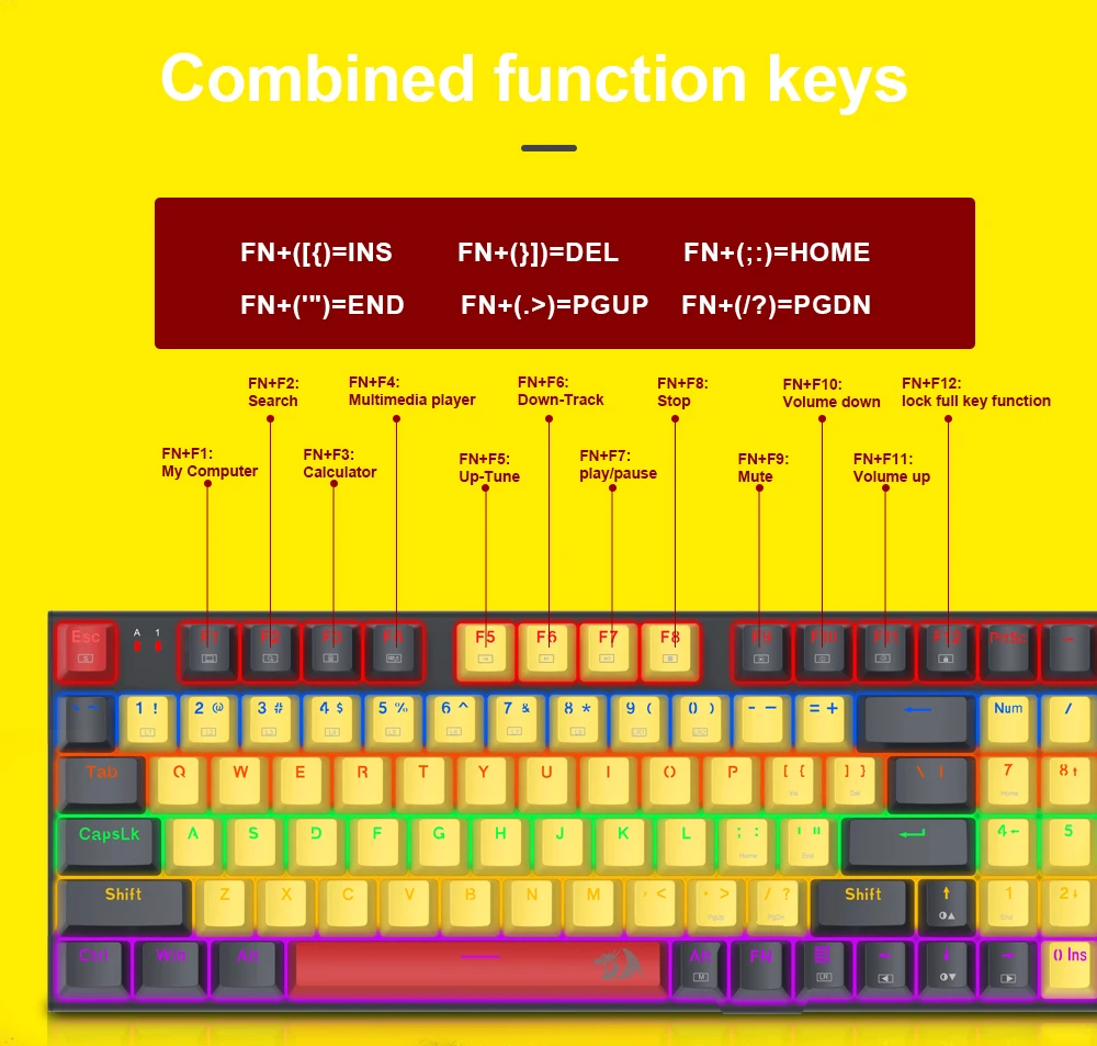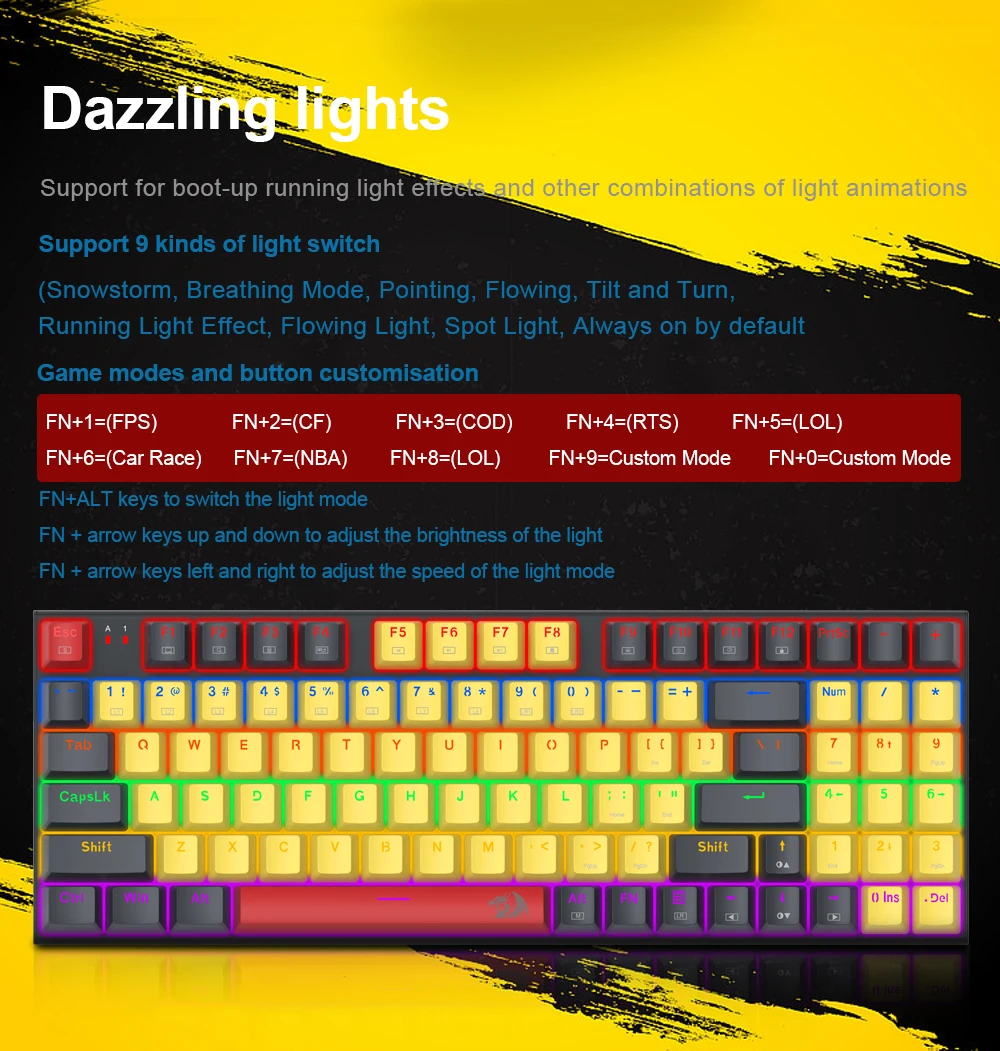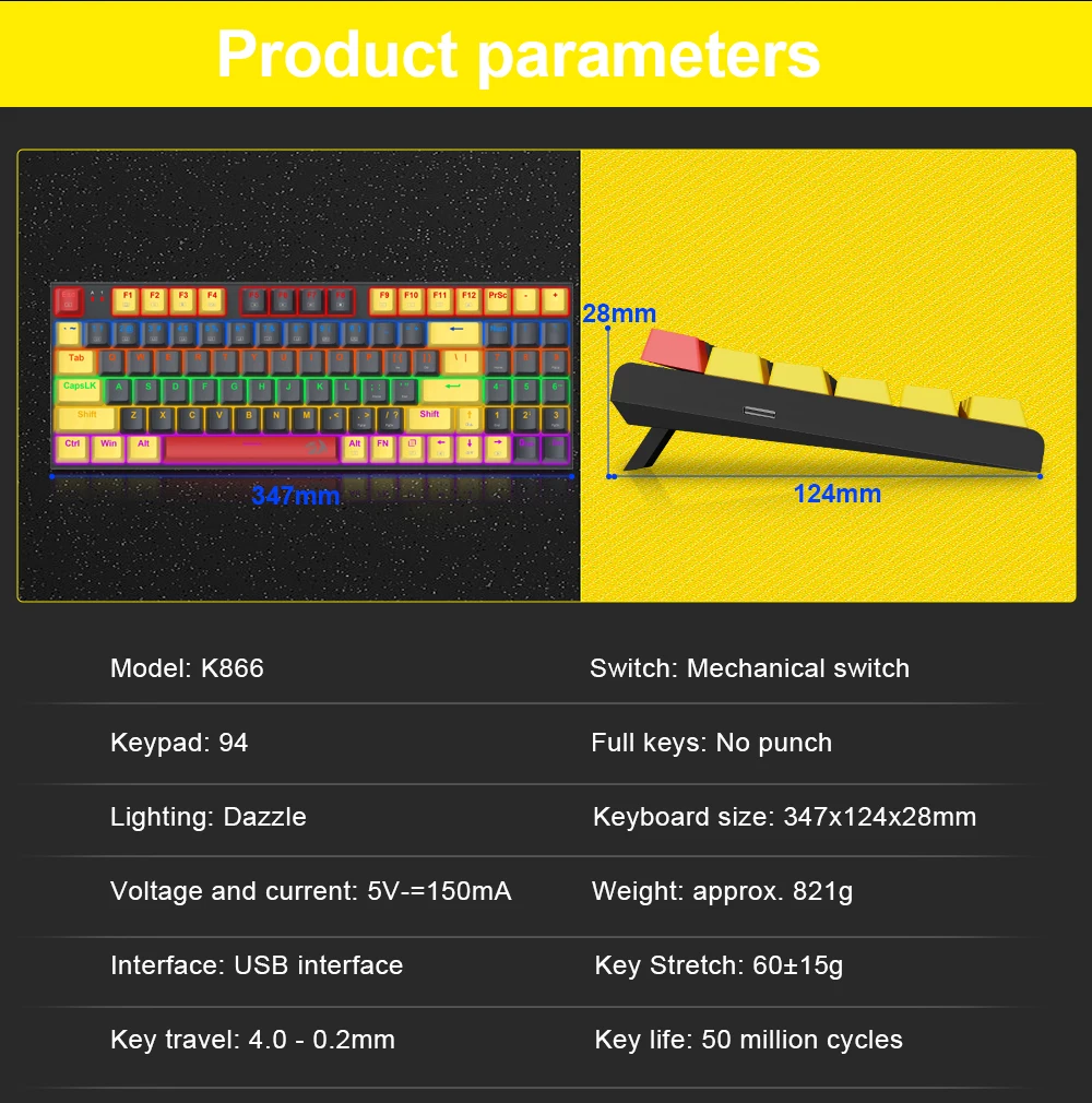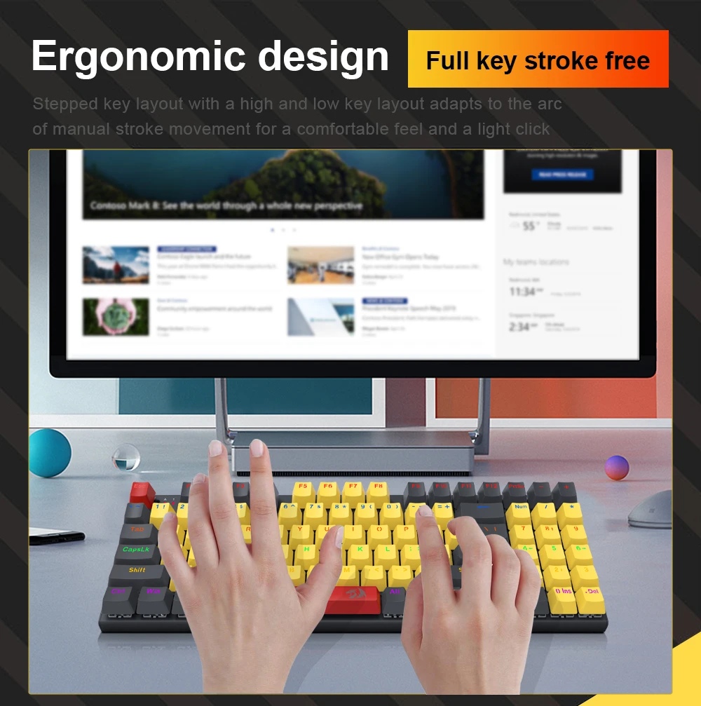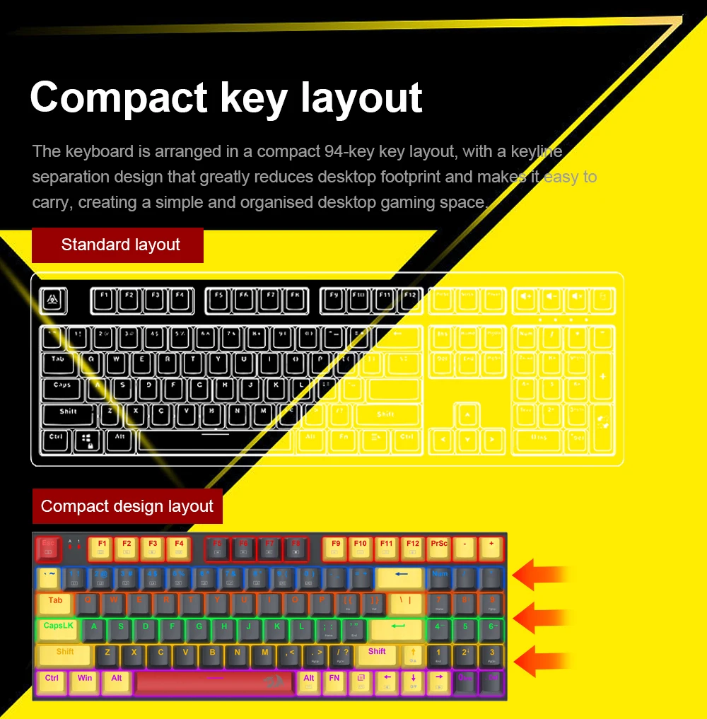 Practical Wired 94 Keys – Redragon 85% layout K866 in wired mode meets the user’s need for separate arrow keys and number keys. The 94-key layout provides the ultimate balance of compactness and 104-key functionality, allowing for the smoothest habit curve.