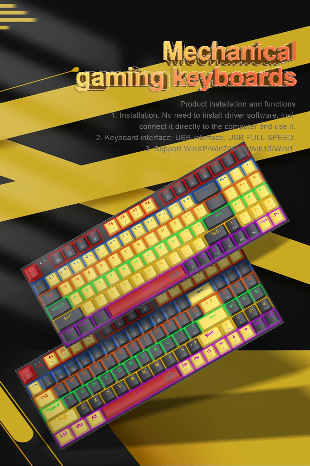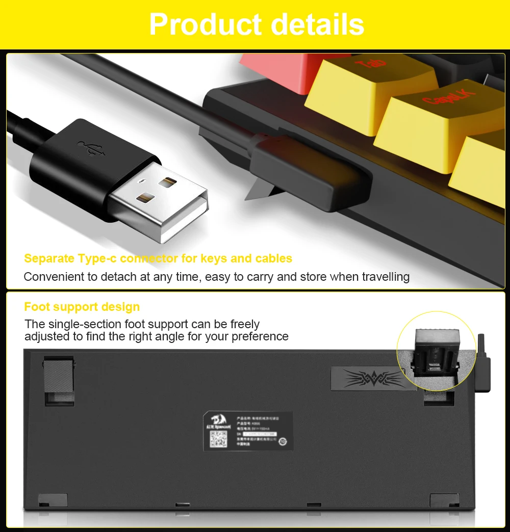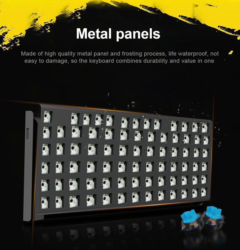 Ergonomic Comfort and High Quality The design of this 94-key keyboard is based on ergonomics, the two keyboard kickstands provide a comfortable angle for typing and effectively reduce the burden on the wrist. Durable metal plate and abs construction, type C cable stand up to hardcore gaming