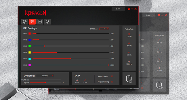 The powerful software supports DPI redefinition, 6 levels are both detailed to XY coordinate system adjustable up to 26,000. That makes your learning curve smoother and seamlessly adapt to the new mouse.