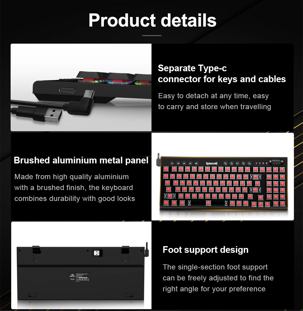 More Details Redefinable: Along with tank-solid material is the Redragon core software driver support, 16.8 million colors backlighting, standard keys remapping, and infinite keybindings are all available for personal re-mod.