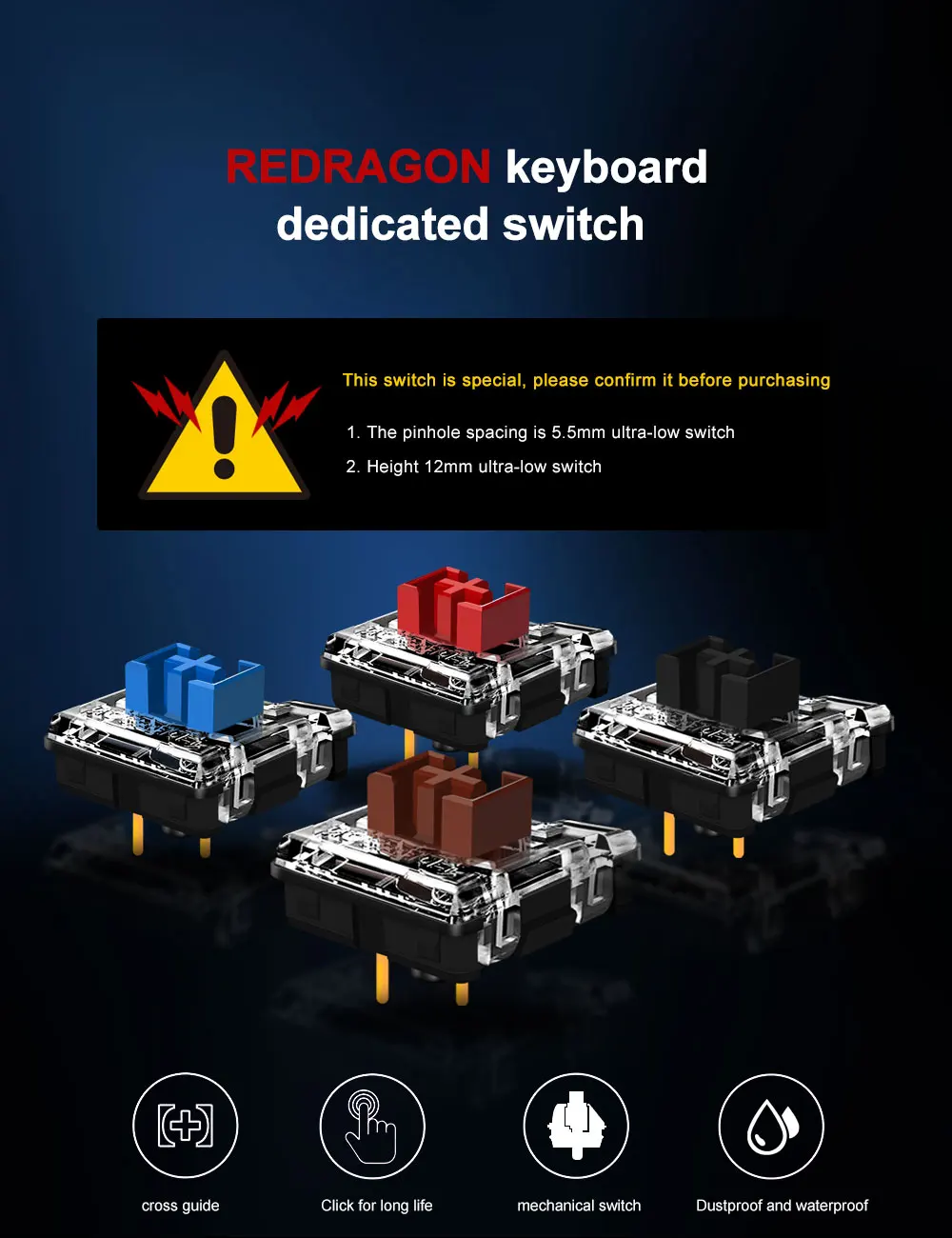 Correctly served for reDRagon's rdk607p keyboard. Brown, silent, tactile-responsive switch, doesn't make that boring click noise just like blue switchs.