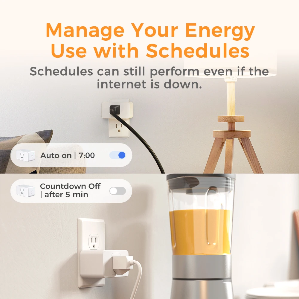 4. Schedule: You can schedule connected home devices to turn on and off automatically by smart plugs. Save energy when lights are not needed or left on by accident. Sunrise and sunset setting are supported.