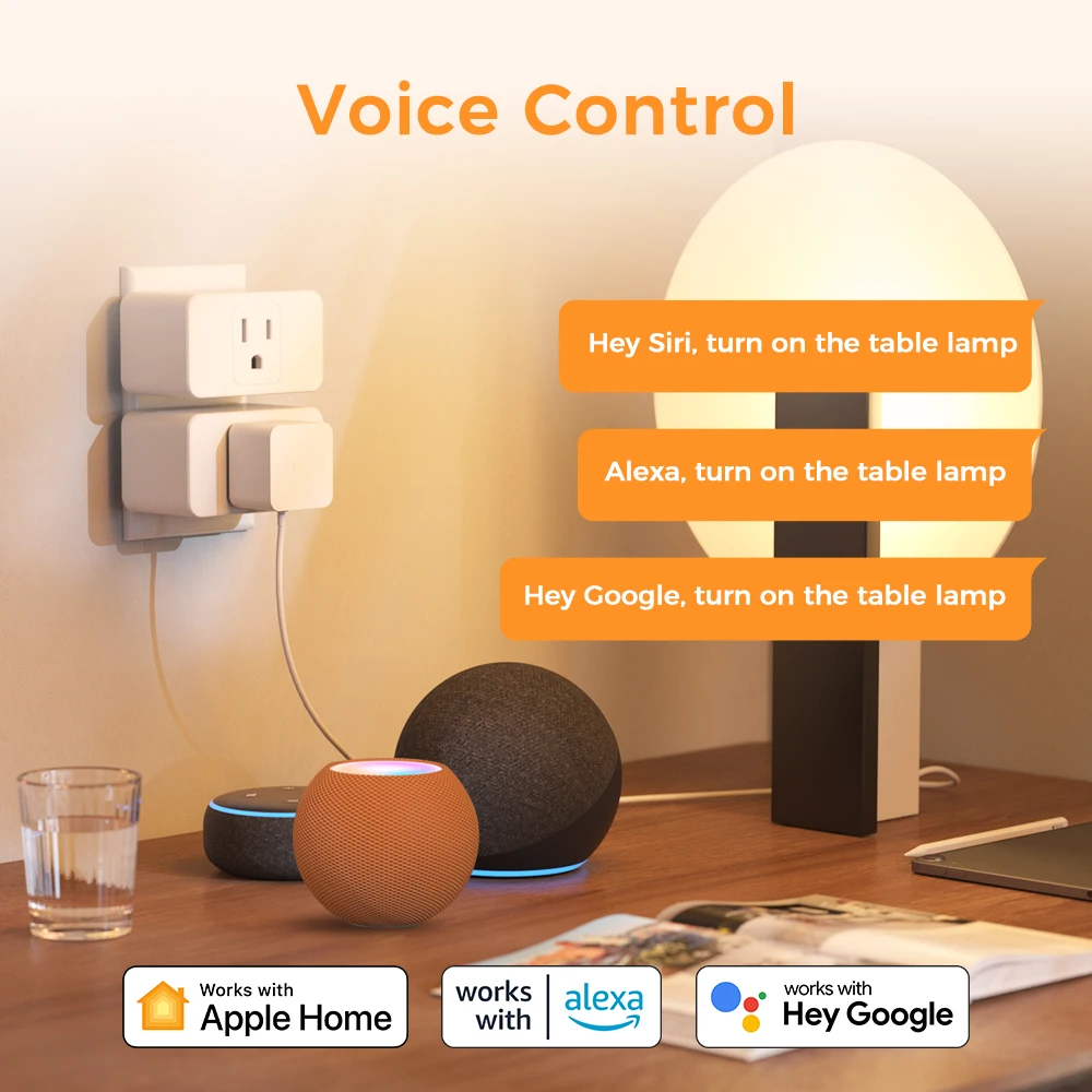 2. Voice Control: You can control your devices hands free, just give voice commands to turn on/off the connected devices. Compatible with Apple HomeKit, Apple Watch, Siri, Carplay, Amazon Alexa, Google Assistant.