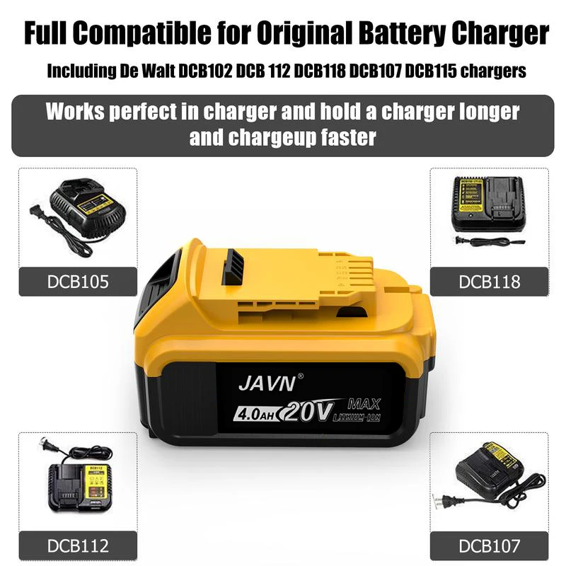 Replacement Li-ion Battery for Dewalt Cordless Power Tool Rechargeable XR battery packs Compatible with Dewalt DCB200 DCB204 DCB205 DCB206 DCB201 DCB203 DCB181 DCB180 20V DCB200 DCD DCF DCG Series Power Tools