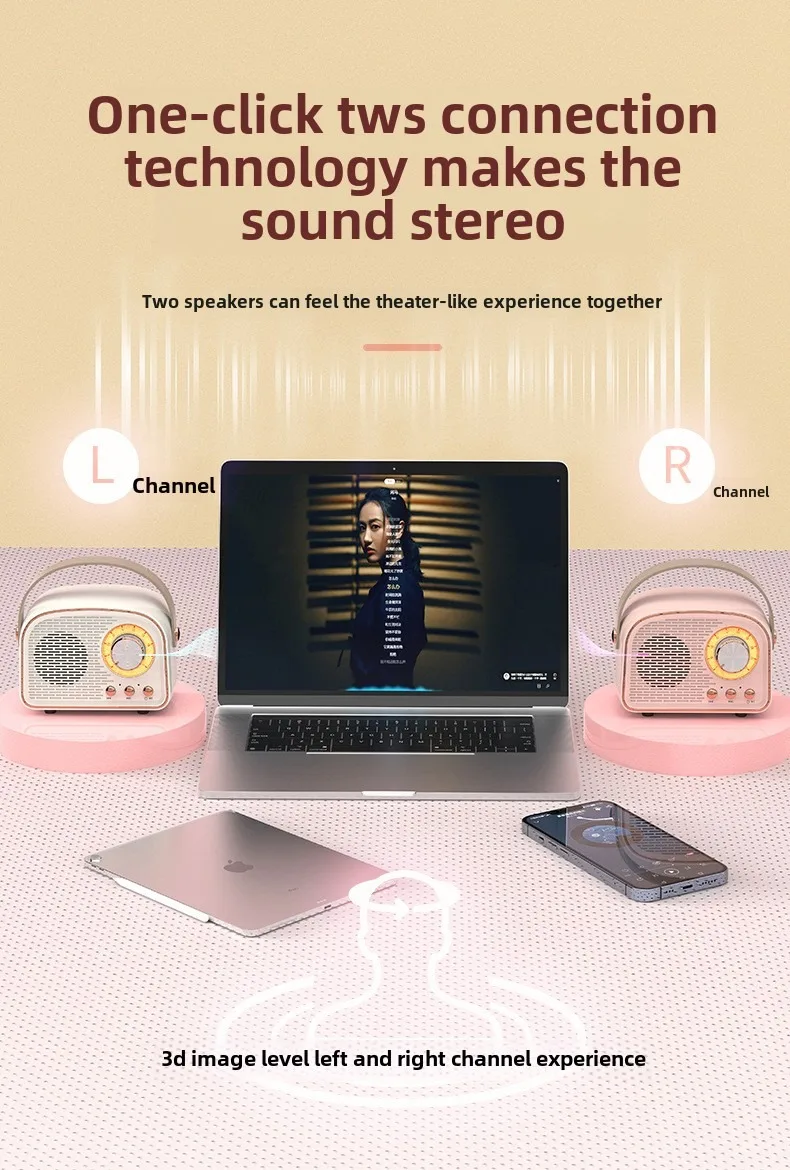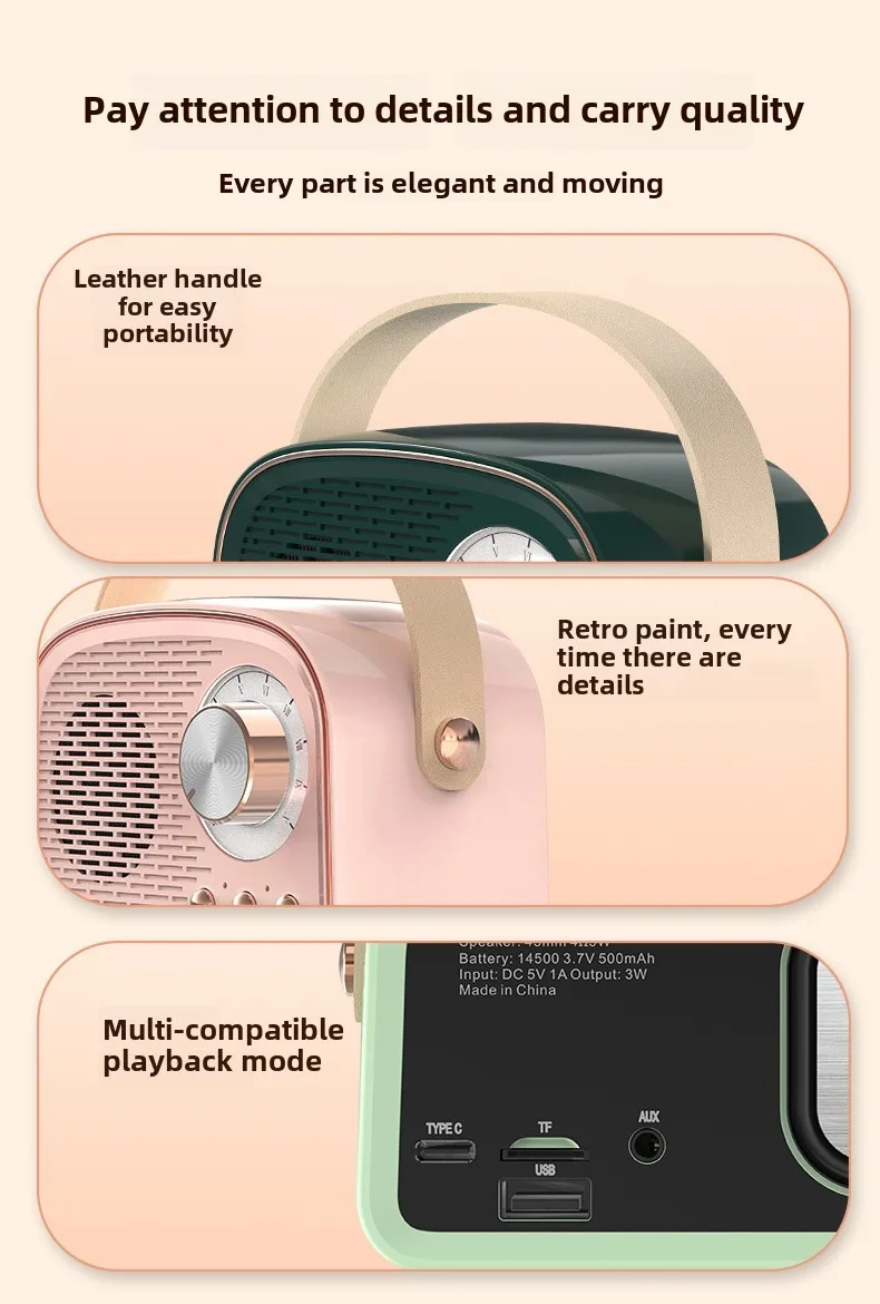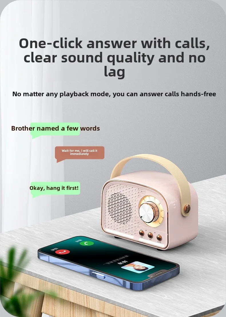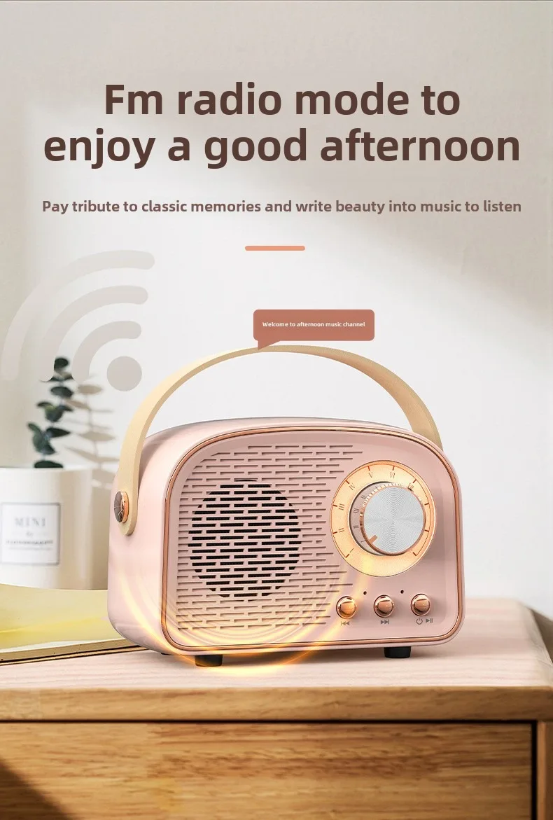 Retro Bluetooth-compatible Speaker Cute Mini Speaker with FM Radio Wireless Speaker with TWS Music Player Hifi Stereo TF USB