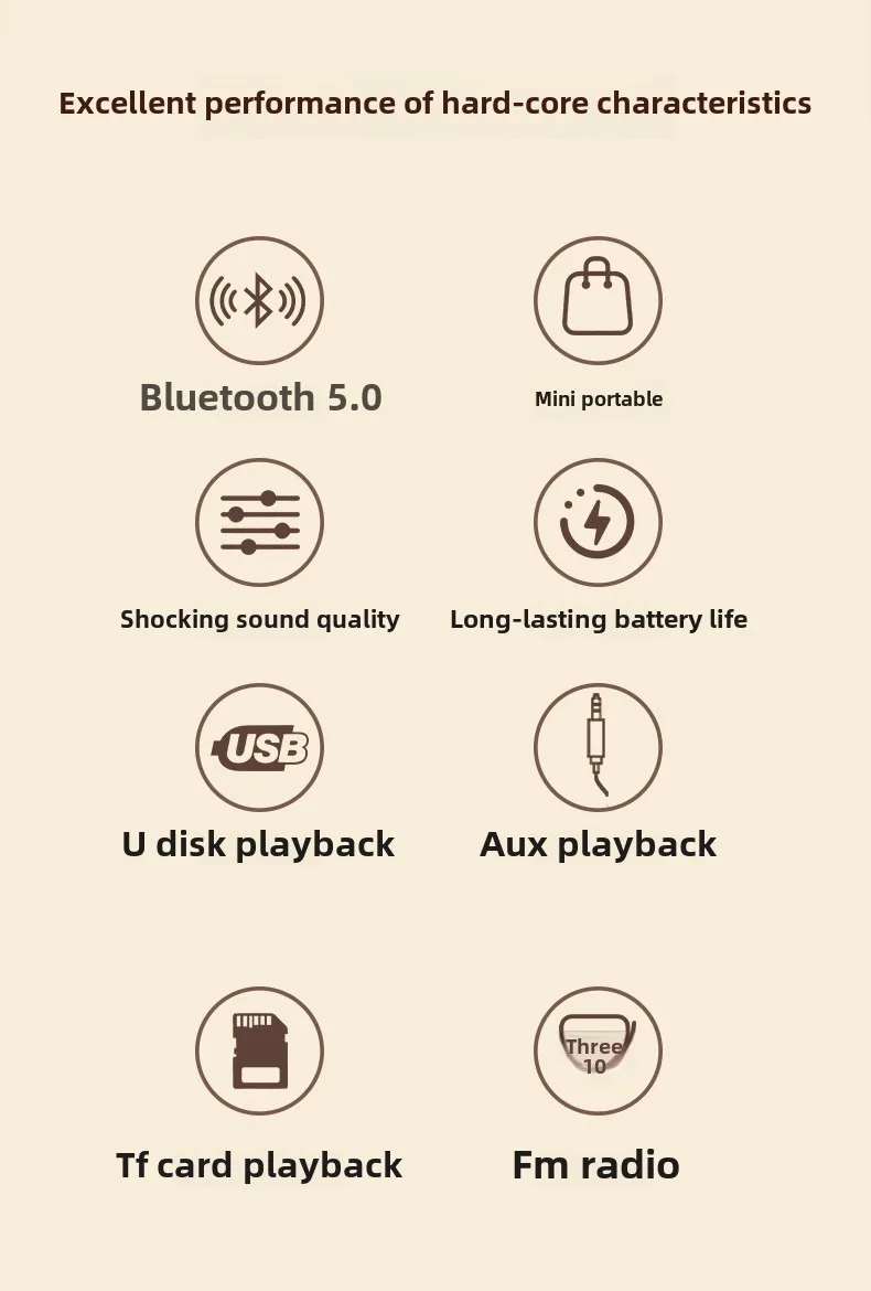 1.【Bluetooth-compatible 5.0 Technology & Support TWS Pairing/TF Card/AUX/USB Playback】:This speaker uses Bluetooth 5.0 technology, Which is compatible with almost all Bluetooth-compatible devices, and also supports TWS connection, Allowing you to enjoy true stereo sound.In addition, There are USB playback mode,TF card playback mode and support for 3.5mm cable input mode for desktop computers or playback devices without Bluetooth-compatible.