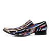 Retro British Style Leather Mens Shoes Color Printing Set Foot Breathable Increase Business Dress Shoes