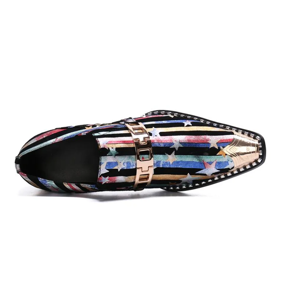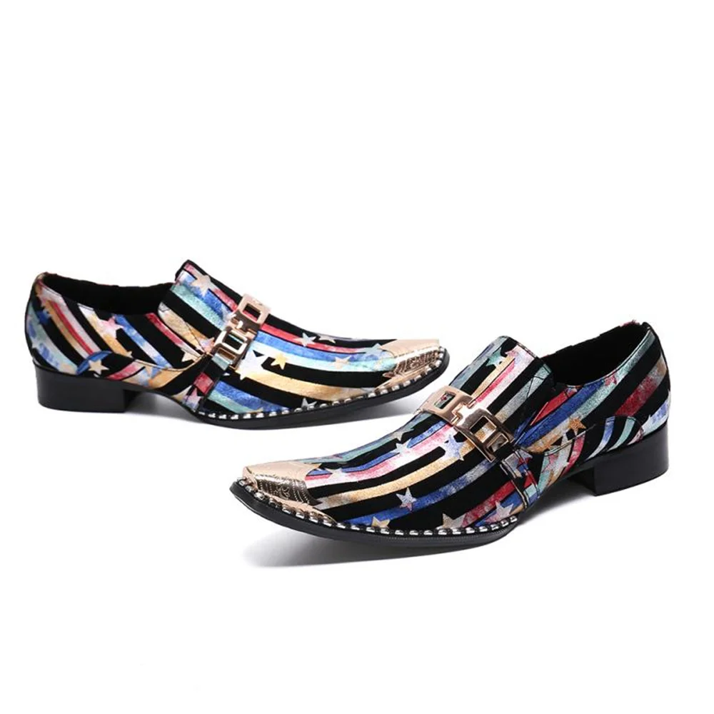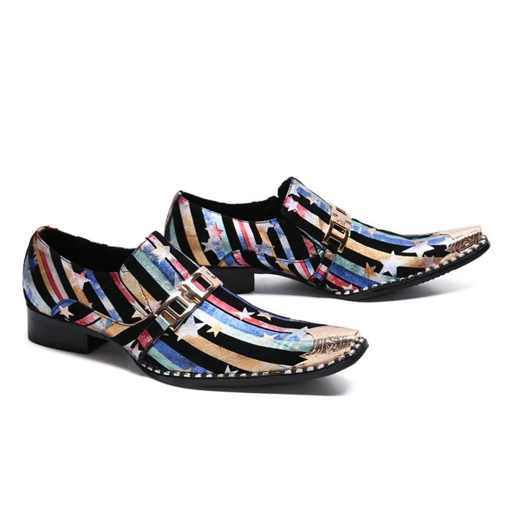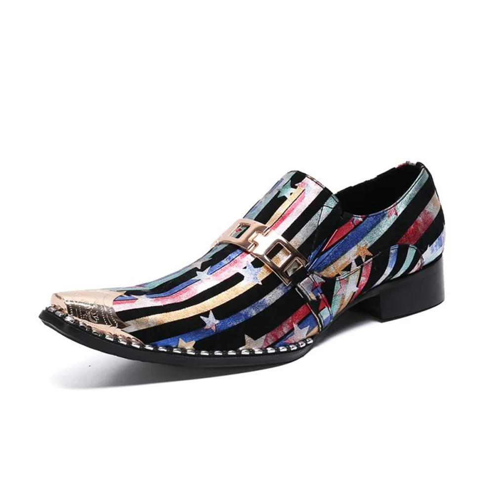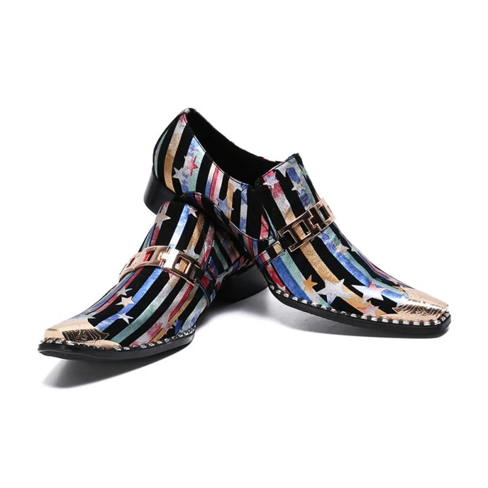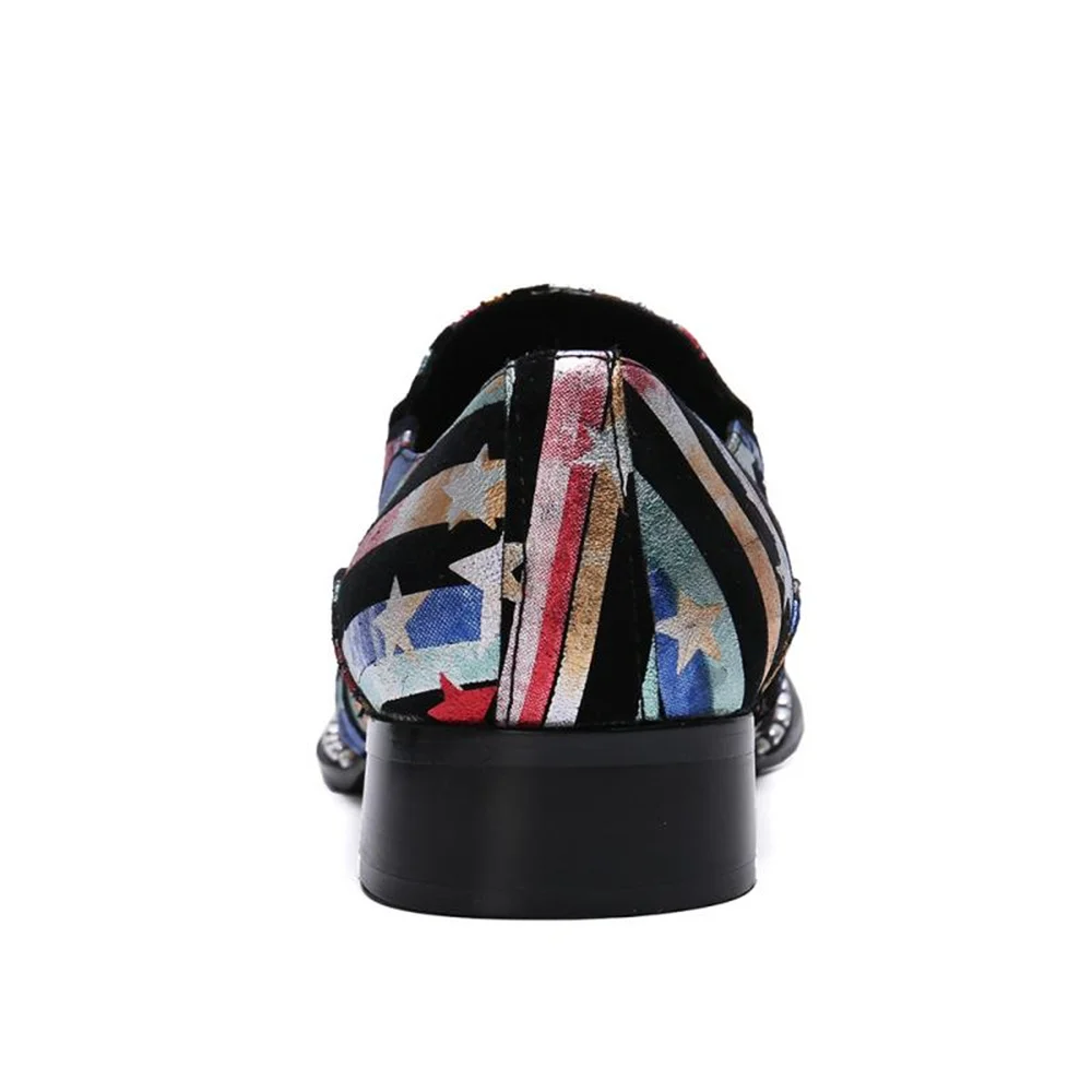 Retro British Style Leather Mens Shoes Color Printing Set Foot Breathable Increase Business Dress Shoes